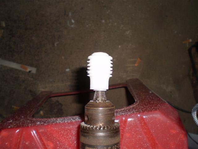 พอกดสวิทส์สว่านทำงาน ทีนี้ก็ใช้กระดาษทรายหยาบๆฝนไปที่โฟมครับเดี๋ยวก็กลม การทำครีบเสื้อสูบก็ให้เอากระดาษทรายชิ้นเล็กๆพับครึ่งกดให้แบนๆแล้วเอาตรงสันกระดาษค่อยๆแหย่เข้าไป ให้ดูฝั่งตรงข้ามจะเห็นความลึกของงานที่เรากำลังทำ ครับ..