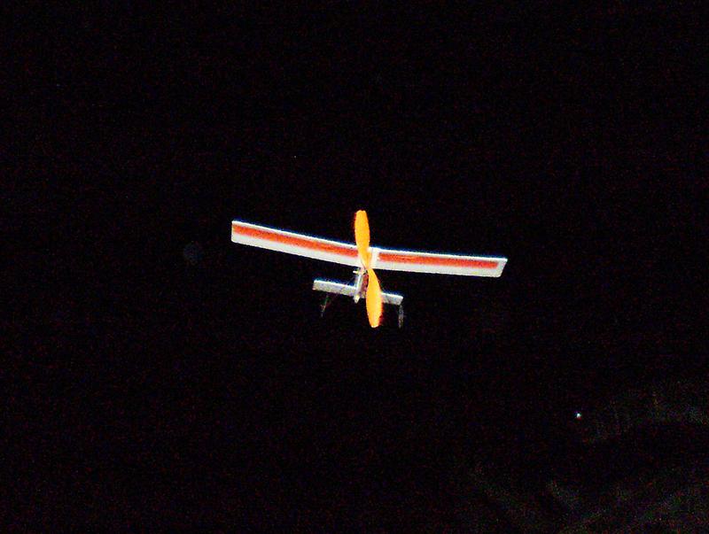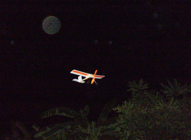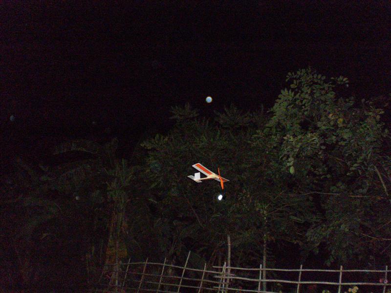 ใบพัดบิ่นไปแล้ว แต่ก็ยังบินเล่นกันอีกหลายรอบครับ สรุปว่าอัตราไต่ ไม่มีครับเพราะกำลังยางไม่พอแต่บินรักษาระดับไปได้ระยะทางซัก 10 เมตรกว่าๆก็ร่อนลงเองครับ.....