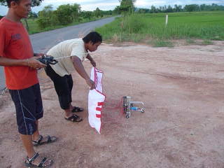 และ ขยายผ้าร่มออกเป็นรูปทรง ของปีก ....