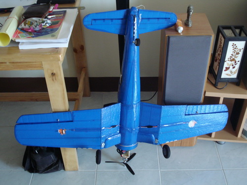 ลำนี้ผมขยายแบบให้ปีก40นิ้วครับ แก้ปีกเป็นท้องแบนเลยร่อนดีหน่อยครับ ส่วนสีนั้นตามแบบของนาวิกฯอเมริกาเลยน้ำเงินหมด ความจริงสีต้องมืดกว่านี้แต่เนื้องด้วยใช้oppเลยสดใสไปครับผม ตอนนี้ติดmarkingเพิ่มเติมแล้วครับกลัวหลงครับ