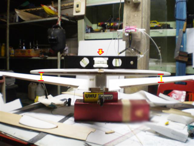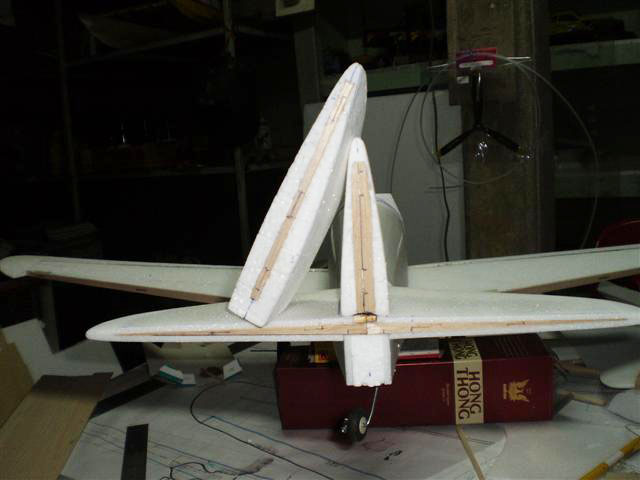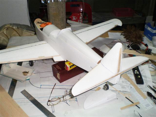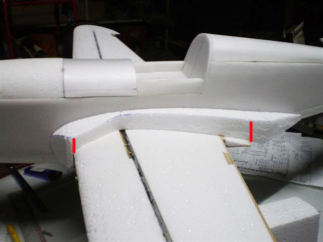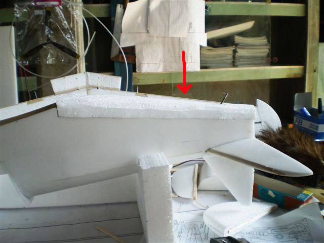 ผมเอาไม้เสริมเข้าไปในแพนระดับ ที่ผมวาดให้ดูคร่าวๆสีเหลืองนั่นแหล่ะครับ แล้วเจาะร่องยาวซัก 1 ซ.ม.เตรียมไว้ เพื่อจะใส่บานพับครับ