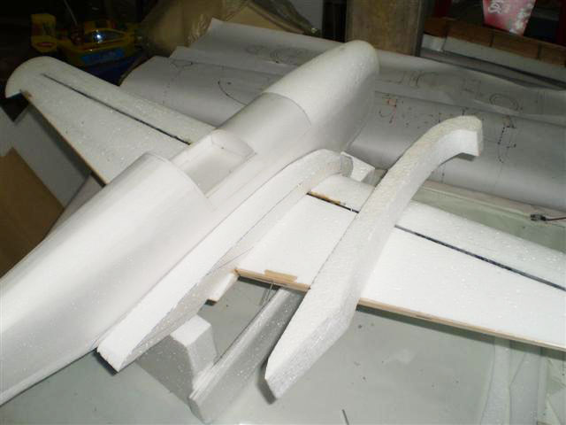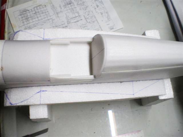 ลอกแบบสเกิร์ทปีกจากในแบบออกมาสองชิ้นแล้วตัดโฟม ต้องให้คัทเตอรืตัลงไปตรงๆหน่อยนะครับ ตรงที่ปีกจะประกบกับมัน