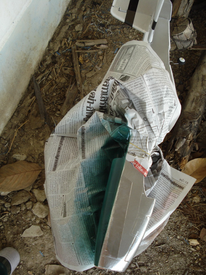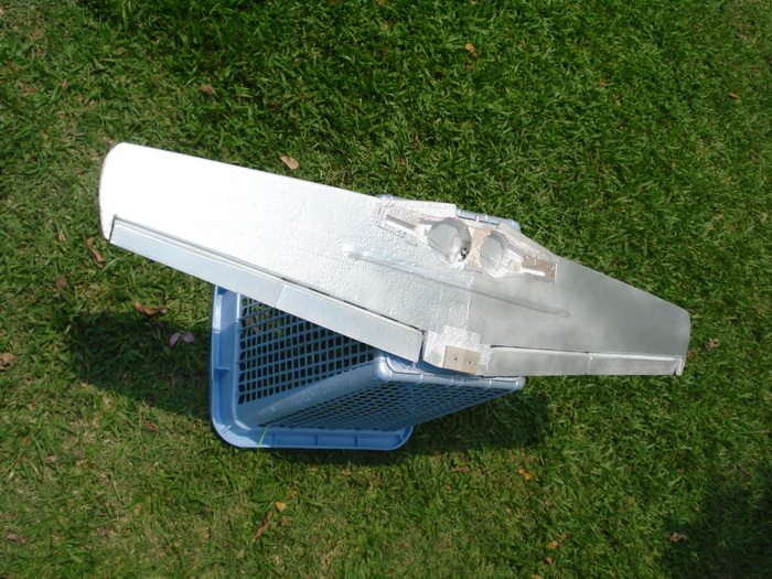 ส่วนคืนนี้ทำได้ถึงเท่านี้ หมดแรงแล้วครับ เติมเทปอะลูมิเนียมส่วนฝาปิดปืนกลอากาศ และทางออกท่อไอเสีย