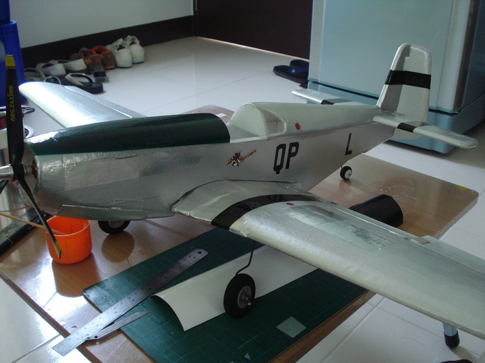 เดี๋ยวตัวนี้จะมีสีดำคาดที่ปีกอีกทีครับ รวมทั้งmarkingต่างๆ จะช่วยให้ไม่หลงครับผม ตอนนี้กำลังตัดสินใจว่าทำลำของเสืออากาศท่านใดอยู่ครับ