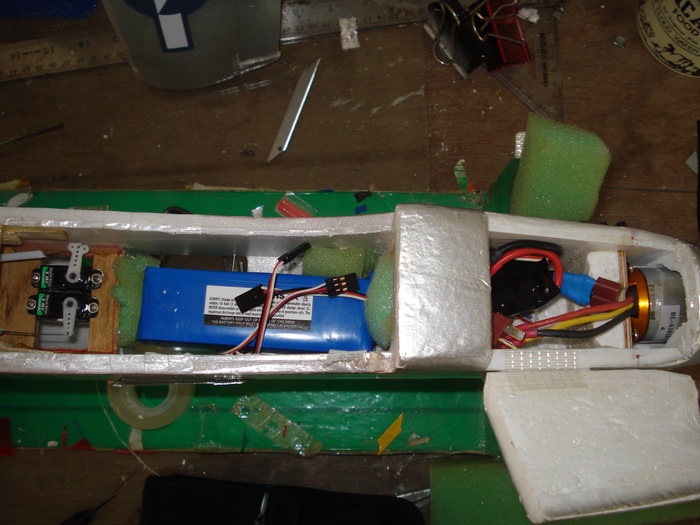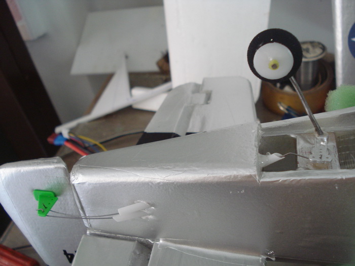ลงเซอร์โวไปแล้ว ชุดควบคุมที่ปีกเรียบร้อยหมดแล้วครับ เหลือที่ลำตัว ตอนนี้ผมมีปัญหากับวิทยุFF7ที่ใช้ มันมีอาการเหมือนปิดสวิทช์เอง ไม่แน่ใจว่าเป็นที่ฐานเสาหรือว่าขั่วแบตฯ ต้องตรวจสอบให้แน่ใจอีกทีคร้บอาการแบบนี้น่ากลัว