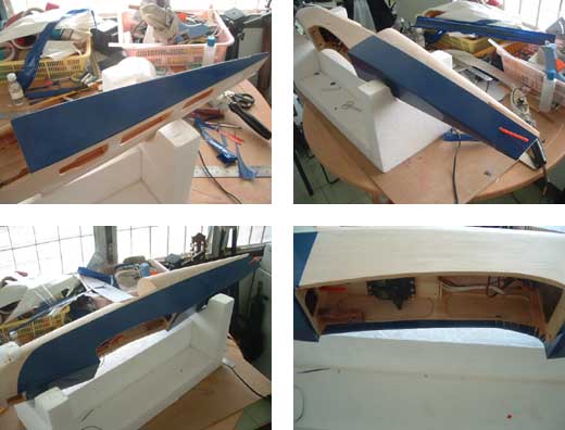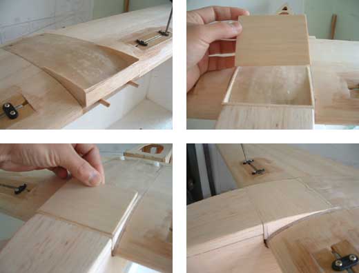ใช้ไม้บัลซ่าขนาดหนา 2 - 3 มิล ฟิลปิดเข้าไปที่ใต้ปีกตรงส่วนใต้ลำตัวเอาที่ส่วนชายหน้าปีกก่อน เสร็จแล้วขัดจนเรียบเสมอกับลำตัว