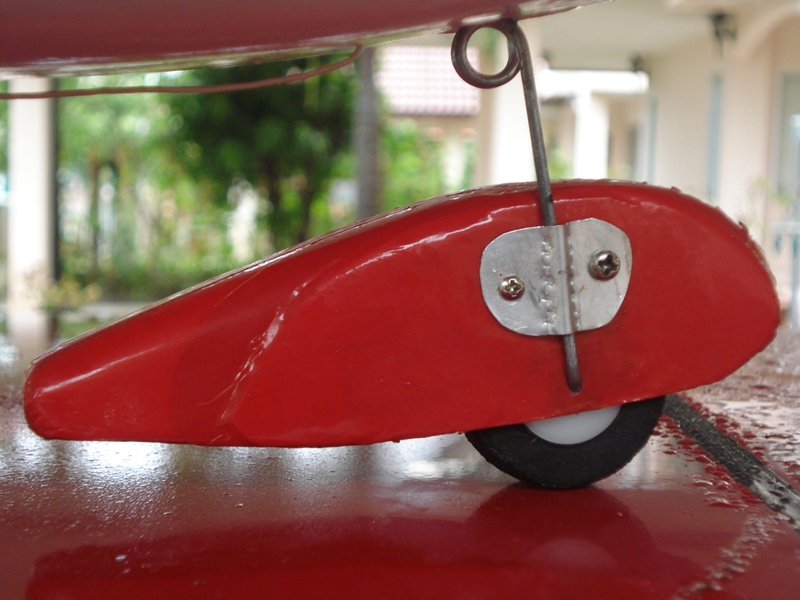 ที่ครอบล้อหลัง ทำจากโฟม ส่วนวิธีทำเคยนำเสนอไปในกระทู้ ชิ้นงานสเกลสองไปแล้วนะครับ เพียงแต่ผมเสริมไม้บัลซ่าไปเพื่อความทนทานกว่าเดิม