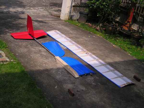 ปีกหลัก กว้าง 43 ซม ยาว 300 ซม. เฉพาะโครง หนัก 470 กรัม