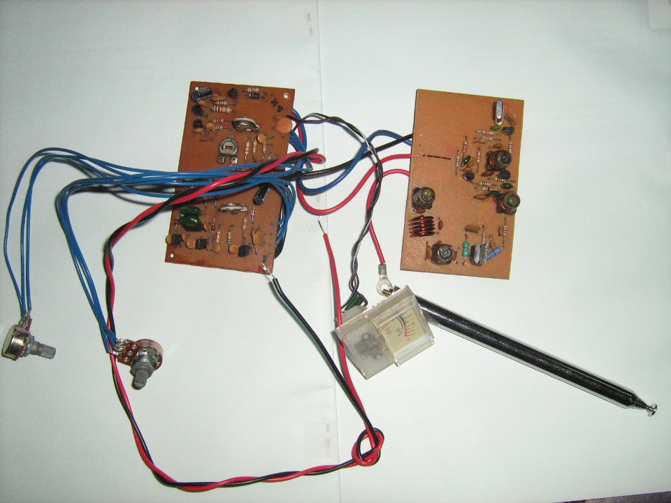 ต้องขออภัยที่ผมจะให้ทำที่ละน้อยเพื่อป้องกันความผิดพลาด และตอนนี้ก็ได้ในส่วนตัวกำเนิดความถี่Coil L1 การทำงานเริ่มจาก TR 2SC828 ต่อการการทำงานเป็นวงจรขยายโดยใช้ R 22K กับ R4.7K แบ่งแรงดันให้ขา B ส่วนทางด้าน ขา C ต่ออยู่กับ Coil L1 ซึง L1 ต่อรวมกับ C 47pF(ณ.ตอนนี้ที่จริง ขดปถมภูมิทำงานรวมกับ C 47pF ซึ้งจะมีพลังงานสะสมสูงสุดที่ 27Mhz ในตอนนี้ก็จะมีสนามแม่เหล็กเกิดขึ้นและนี้เองที่ทำให้ขดทุติยภูมิเกิดมีแรงทางไฟฟ้าปรากฏและส่งไปขา B ของ TR ตัวต่อไป ) การทดลองถ้าเราใช้ สายวัด RF วัดที่ปลายทุติยภูมิเราจะวัดได้ค่าพลังงานทาง DC ได้ค่าหนึ่งด้วยครับ