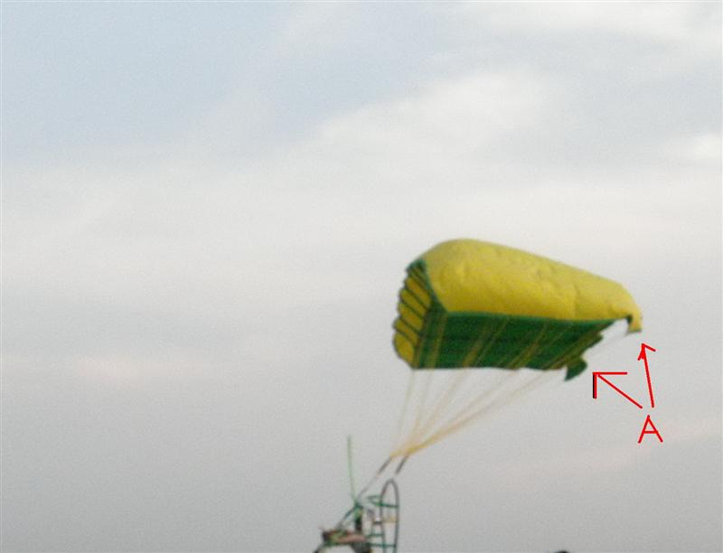 มุมร่มที่พับลงมาด้านท้าย ...อาจดูไม่สวยงามเหมือนร่มจริง แต่มีผลต่อการพยุงร่ม และการทรงตัวแน่นอนครับ ..