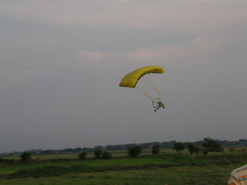 ต้องยอมรับว่า เรื่องการบินของผมยังไม่เป็นที่พอใจครับ...ตอนเลี้ยวเราต้องลุ้นกันน่าดูว่าเมื่อไหร่จะเลี้ยวเสร็จ ....และพอระยะหนึ่งก็เริ่มไม่เลี้ยวแล้ว ผมเองก็ยังไม่รู้ปัญหาว่าเป็นเพราะอะไร.....ตอนเลี้ยวเข้าหาลม ร่มก็พับล่วงลงมาเลย อันนี้น่าจะเป็นเรื่องกำลังลม ทิศทางลม