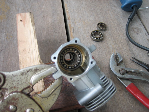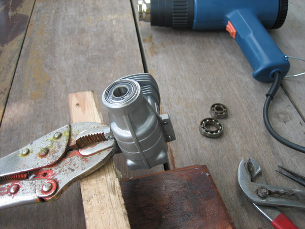 จากนั้นเอา ลูกปืนตลับใหม่หยอดลงไปเลย ถ้าเคสเครื่องเย็นแล้วจะใส่ยาก ต้องเป่าความร้อนช่วย
