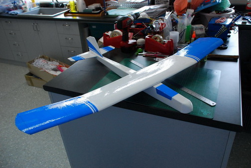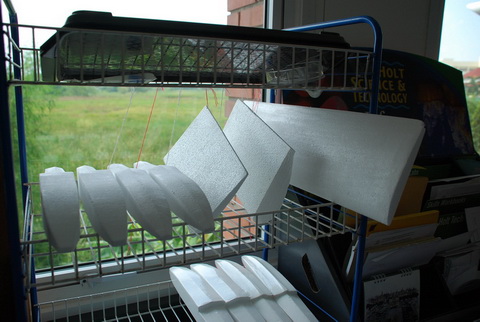 ตัดปีกเสร็จแล้้วก็ขัดด้วยกระดาษทราย เช็ดฝุ่นออกให้หมด (อย่าลืมใส่อุปกรณ์ป้องกันฝุ่นเศษโฟมด้วยนะครับ อันตรายมาก... มะเร็งนะมะเร็ง ท่องเอาไว้) จากนั้นก็เอาไปผึ่งลมให้แห้ง ...