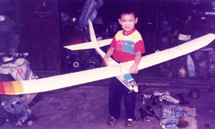 ลำนี้ผมทำมานานมากแล้ว ตอนนั้นไม่มีมอเตอร์ให้เล่นหรอกครับ มีแต่เครื่อง cox .049-.051 ผมเลยเอา.051จับยัดลงไป บินได้ครับแต่อัตราไต่ไม่ค่อยทันใจเลย