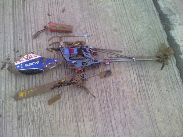 เมื่อเย็นนี้ไปบินมาที่สนามส่วนตัวครับ เกิดเหตุสลดกับเจ้าตี๋เล็ก 450 ของผมอีกแล้ว กำลังฟลิบอยู่ดีๆ servo หลับซะ ลงโคลนเละ ไม่เหลือ...