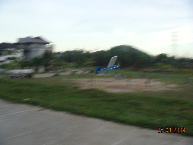 มารายงานผลครับ วันนี้บินขึนไปวนได้สองสามรอบ ปรากฎว่าลมแรงมากครับ เล่นเอาซะปีกพับเลยครับ (พับเป็นตัววีเลย) ก็เลยบินประคองๆ จะลง เจอลมซัดอีกเลยล่วงเลยครับ วิ่งตามเก็บ ฮ่าๆๆ สนุกดีครับ