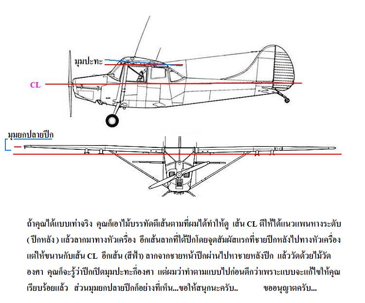 3. แถมให้ .. มุมปะทะปีก ไม่มี หรือ 0 องศานั่นเองครับ เนื่องจากปีก Clark Y แรงยกมากอยู่แล้ว หากทำมุมปะทะมากบินสวนลมอาจหงายท้องได้ครับสำหรับมือใหม่ ...