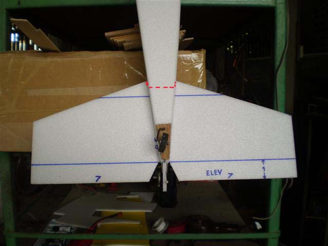 ที่แผ่น ELEVATOR ตัดตรงส่วนที่ RUDDER จะปัดมากระทบพอประมาณนะครับ (ตามภาพ) เพราะเราทำ บ.