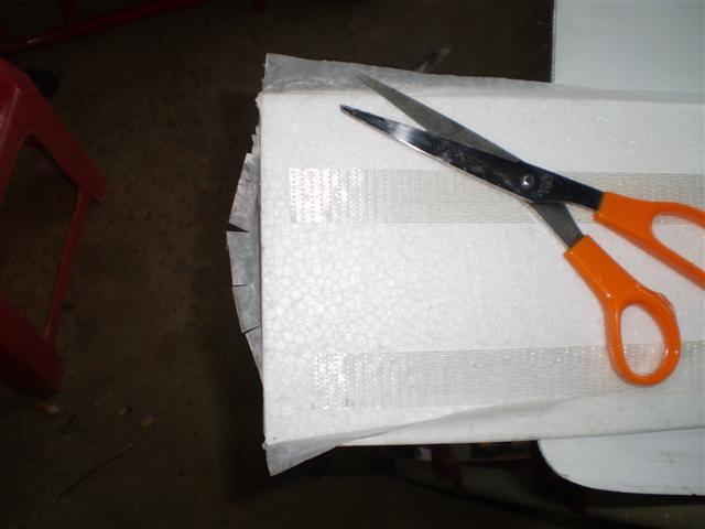 พอกระดาษแห้งแล้วเราก็ต้องเก็บงานที่เหลืออีกหน่อยนะครับ ตรงขอบๆตรงไหนมีส่วนโค้งก็ใช้กรรไกรตัดตามอย่างในภาพครับแล้วเอาภู่กันจุ่มน้ำกาวปาดก็เรียบร้อยแล้วครับ..