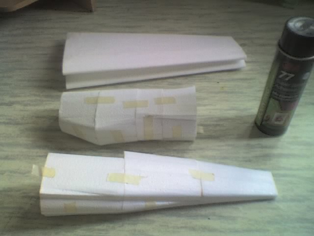 เรามาเริ่มทำปีกกันเลยดีฟ่า... เริ่มจากให้เพื่อนๆเตรียมแบบของแอร์ฟอยทั้งสองอันมาจัดการติดไม้รองซะก่อน...ใช้เศษๆไม้ก็ได้ครับยาวพอประมาณ(ดูภาพครับ) เป็นไม้เนื้อแข็งหน่อยยิ่งดีเพราะมันต้องรับน้ำหนักเส้นลวดด้วยนะครับ ติดเข้าด้วย CA แตะนิดหน่อยให้พออยู่ก็ได้ครับ...