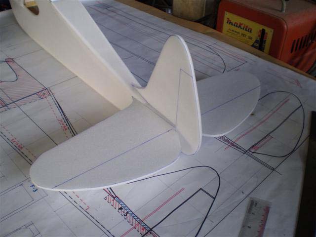 ผมใช้วิธีหากึ่งกลางลำตัวด้วยวิธีนี้ครับเพราะไม่ได้ทำทีแรก คืองี้ครับ..วัดแบ่งครึ่งที่สันหลังตรง F 3 แล้ววัดแบ่งอีกที่ก็ตรงท้ายสุดที่โฟมประกบกัน จากนั้นเอาเชือกเส้นเล็กๆขึงให้ตึงพอประมาณ แล้วเอาปากกามาร์คไว้ก็จะได้เส้นกึ่งกลางแล้วครับ....