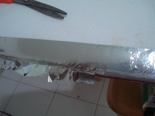 เมื่อส่วนประกอบอื่นๆครบแล้วทีนี้ก็มาถึงขั้นตอนการปะเทปปะหม้อกันครับ (ถ้าเป็นoppจะง่ายกว่า) เทปสีเงินอันนี้มีปัญหาหลายด้านนะครับ ทั้งสะท้อนคลื่น เป็นรอยง่าย