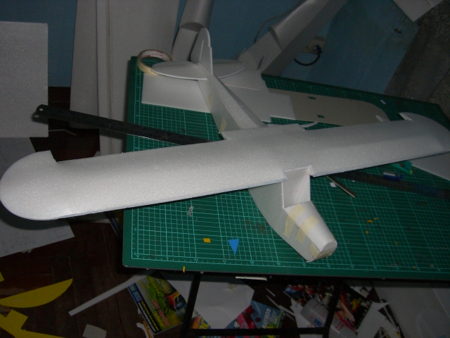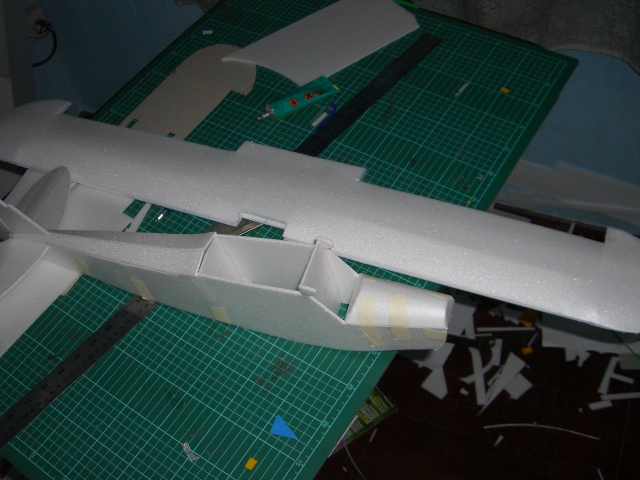 เครื่องยนต์หรอ ซึ่งผมใช้แค่โฟมในการทำไม่มีเสริม ไม้หรือฟิวเจอร์บอร์ดนะคับ แต่ใช้โฟม5มิล 2แผ่นทำให้เครื่องบินหนาขึ้น พอติดสติกเกอร์เส็จแข็ง พอๆกะไม้อัดเลยคับ