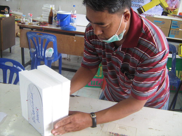 ทีนี้ก็ใช้มีดปาดแต่งเอาครับ แล้วเก็บด้วยกระดาษทรายอีกที..