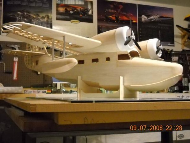 จุดที่หนักที่สุดอยู่บนปีก ถ้าปีกสั้น มันจะโคลงเอาเรื่องเลยครับ และทุ่นปลายปีกต้องละน้ำเล็กน้อย อย่าให้ลอยเหนือน้ำมาก