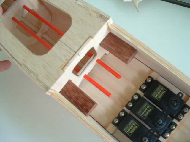 ตัด สแตร็ป และ เอลเวเตอร์ ด้วยไม้ บัลซ่าขนาด 6 มิล โดยทำแพทเทิร์นด้วยกระดาษแข็งขนาดเท่ากับแบบ แล้วนำมาทาบตัด ลงบนไม้บัลซ่า