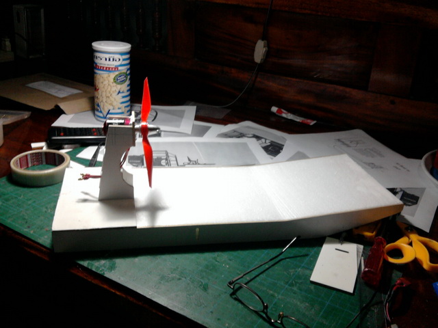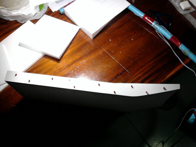 4.ใต้ท้องเรือ ทำมุมให้มีมุมแหลม จะได้ไม่ปะทะกับน้ำมากไป ( ตอนนี้มันลาบเรียบ เพื่อสดวกกับการทำ )