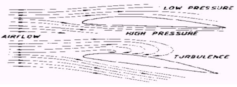 airfoil ] อากาศที่ไหลผ่าน ด้านบน ของปีกจะมีการไหลที่ไม่ราบเรียบอีกต่อไป