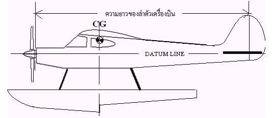 เมื่อได้จุดCGแล้วให้ถ่ายตำแหน่งจุดCGนี้จากปีกมาที่เส้นDATUM LINEที่เราลากไว้ก่อนแล้ว