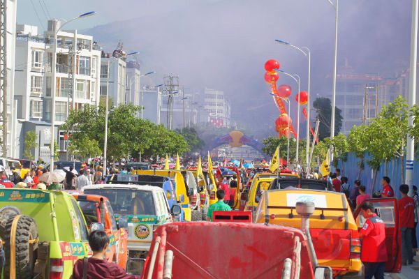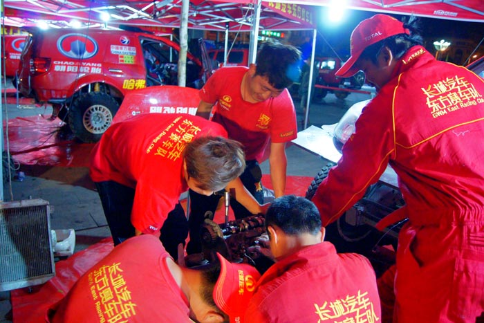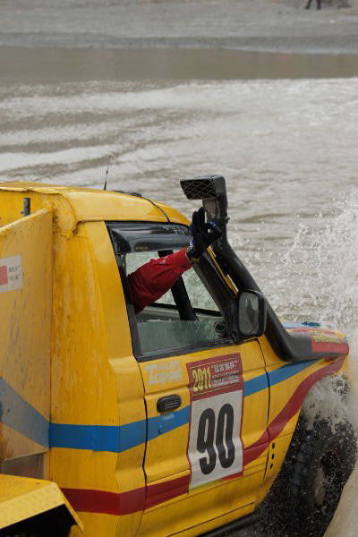 " เหม่ยหวั่นถีไม่เป้นไร เรื่องภาษาจีนเพราะเรื่องมั่วๆผมถนัด เขออี้พอได้ขี้งูๆขี้ปลาๆ และภาพที่ส่งข่าวมาให้ดูกัน เป็นภาพทีมไทยออกเดินทางจากชายแดนสปป.ลาว มาถึงคุนหมิงประมาณตีหนึ่งและถ่างตากันมาจนถึงเมืองตุงชวนตีสี่ครึ่ง ท่ามกลางความดีใจของช่างเทคนิคและคนไทยที่กำลังรออาหลั่ยจากทีมไทย เนื่องจากทีมแชมป์จีนได้มาเมืองไทยและลงทุนซื้อเครื่องยนต์ 1KZ และวีโก้จากไทยเพื่อเอามาลงแข่ง โดยมีช่างเทคนิคไทยสองคนตามมาก่อนหน้านี้ เพื่อดูแลเครื่องยนต์หลังการขายให้ด้วย ซึ่งหลังจากแค่พยายามทดลองเครื่องยนต์ตัวใหม่จากไทย ปรากฎว่าแค่เหยียบรถยนต์มันส์เท้ามาได้แค่ริมฝั่งแม่น้ำเฉียวเจียงหฤโหด เป็นเส้นทางการแข่งขันที่ผู้จัดอนุญาติให้ทุกทีมทดสอบในสนามได้ก่อนทำการแข่งขัน รถยนต์สายพันธ์ไทยทนเท้าจอมยุทธออฟโรดจีนไม่ไหว เครื่องยนต์พังกระจาย อันเป็นเหตุให้ทีมไทยต้องตั้งหน้าบึ่งรถรีบเร่งมาอย่างเร่งด่วน ไม่ยอมหยุดนอนพักที่เมืองคุนหมิง เพื่อเอาอาหลั่ยมาซ่อมทันลงทดสอบในแม่น้ำหฤโหดวันที่ 29 เม.ย.54"