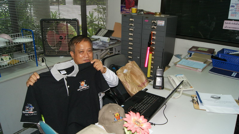 แค่พี่แรดบิน แกโชว์เสื้อ หมวก ให้ เพื่อนสื่อมวลชน ในต่างแดนเห็นว่า ถ้าไปครั้งหน้าจะนำเสื้อ หมวกไปฝาก