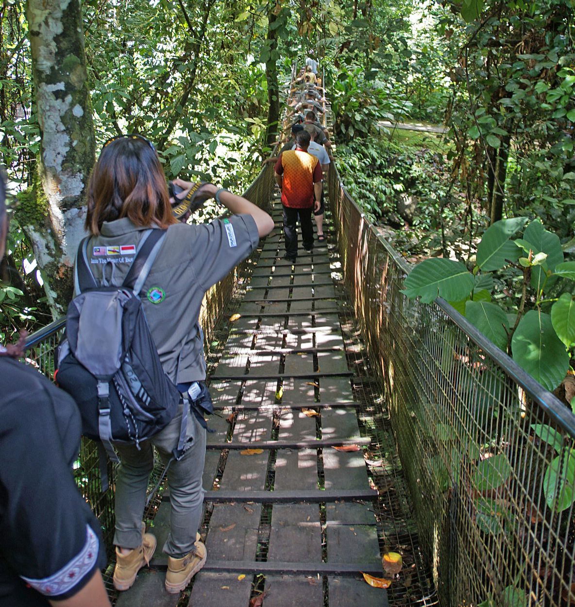 วันที่เจ็ด วันเสาร์ 19 สิงหาคม นักท่องเที่ยวชาวออฟโรดผจญภัย ต่างแยกย้ายกันออกท่องเที่ยวตามเส้นทางเดินป่าดงดิบธรรมชาติสมบูรณ์ ที่มีความหลากหลายของพืชพันธุ์ไม้ต่างๆ รวมทั้งมอส เฟิน ไลเค็น โสมป่า ฟอสซิลพืชและสัตว์ ถ่านหินแร่ธาตุหลายชนิด สัตว์ป่าได้พบเห็นในขณะเดินเที่ยวตอนกลางวันได้แก่ไก่ป่า หมูป่า กวางป่า นกเงือกและนกนานาชนิด ในป่าลึกกว่านี้จะมีทั้งช้างแคระปิคมี่ หมี กระทิงป่า ควายป่า เสือแลบพาร์ด และป่าที่นี่มีทากชุกชุมให้พบเห็นครบสามชนิด มีทั้งทากอยู่บนพื้นดินตัวสีดำคล้ำ(Tiger Leech) ทากอยู่บนต้นไม้สีเขียว ทากอยู่ในน้ำสีออกน้ำตาลอ่อน ซึ่งบางกลุ่มมีความสุขกับการไปเล่นน้ำตก แต่บางคนก็โดนทากดูดเลือดสาดกลับมารวมทั้งพวกเดินป่าด้วย ช่วงค่ำยังคงมีกิจกรรมไนท์ซาฟารีส่องดูสัตว์ คืนนี้โชคดีได้พบเห็นสัตว์ป่าเหมือนๆคืนแรก และยังได้พบเห็นกบภูเขา ที่น่าตื่นเต้นที่สุดได้เห็นชะมดมาเลเซีย(Malay Civet)