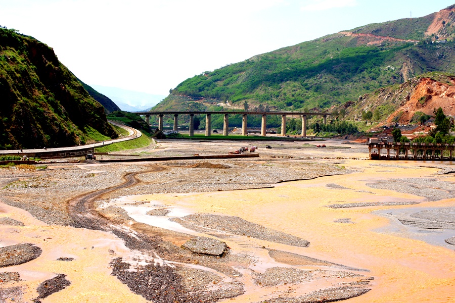 ช่วงต้นแม่น้ำเฉียวเจียงมุดผ่านสะพานแรกน้ำยังไม่ลึก!