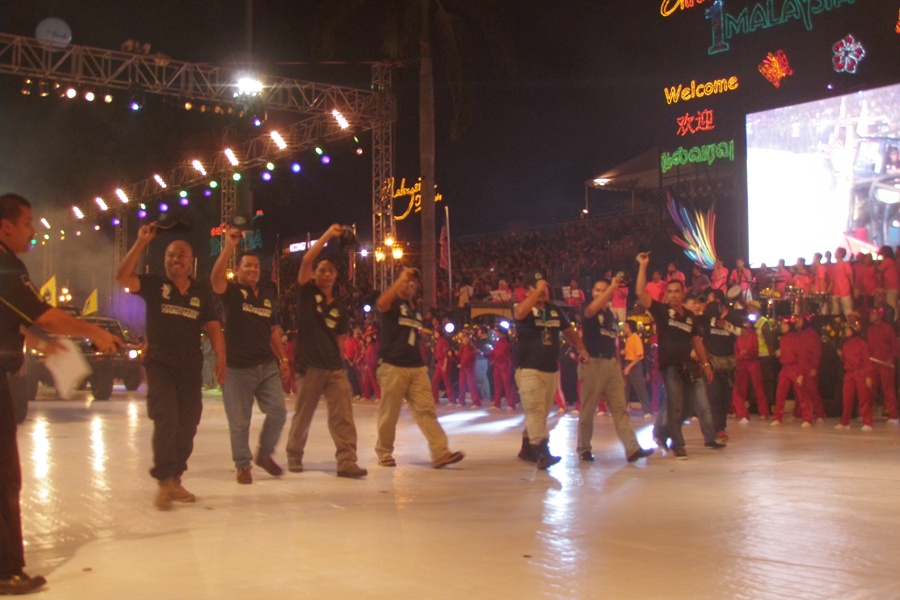 With flags flying and lights shining bright, our 9 four-wheel drives with 18 adventurers made a grand entry, which was one of the highlights of our segment. Our march pass by our adventurers, waving and smiling at the VIP stand with our four-wheel drives driven with precision was greeted with cheers and applauses from thousands of spectators, estimated at 100,000, which included foreign media and travel agents from 28 countries.