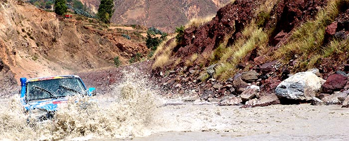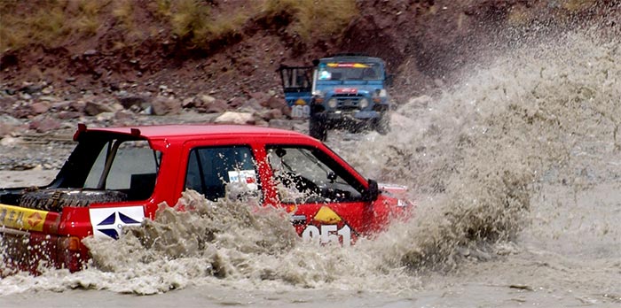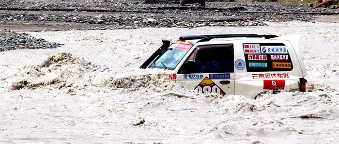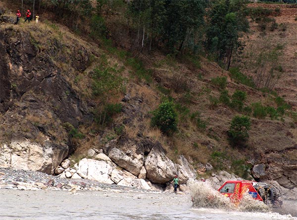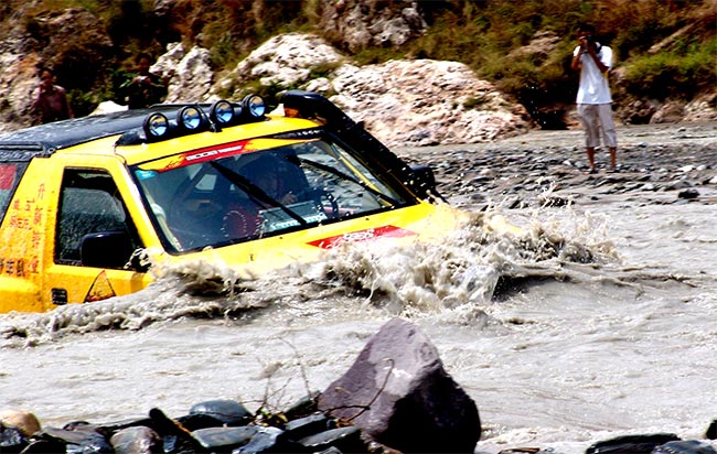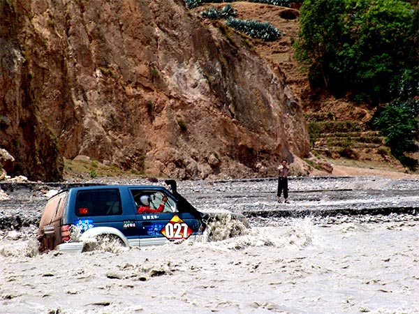จากตอนที่แล้วเช้า30 เมษายน วันที่สองของการแข่งขันก็ทำให้ทราบแน่นอนว่า การแข่งขันวันแรกที่หมู่บ้านอู่หลงหรือมังกรดำ เพื่อจัดอันดับแข่งขันระยะทางแค่ประมาณ 30 ก.ม.ในแม่น้ำเฉียวเจียง มีนักบู๊ออฟโรดมังกรจีนพลาดท่า รถยนต์พลิกคว่ำสังเวยพระแม่น้ำเฉียวเจียงไปหนึ่งคัน และอีกหลายทีมช่วงล่างโช้คอัพเริ่มพังกันแล้ว แต่สำหรับวันนี้ต้องนับว่าเป็นการเริ่มสัมผัสการบู๊ผจญภัยหฤโหดสุดของจริงแน่นอน ด้วยต้องลงแข่งขันกันในระยะทางประมาณ 30 ก.ม. เส้นทางสมรภูมิออฟโรดวันนี้แม้นยังไม่ยาวเหยียดตลอดทางในแม่น้ำ ตั้งต้นตั้งแต่ เก๋อเล่อะ เซี่ยวโพโต้วฟูโก้ว เจี่ยงเจียโก้ว ซึ่งกับดักตามเส้นทางเป็นร่องน้ำตื้นน้ำลึกเป็นช่วงๆ แม้นยังพอมีพื้นที่ให้หาทางหลบหนีเลี่ยงได้ แต่การเสี่ยงมั่วดวงรีบลนแยกออกไปจากทางร่องถนนหรือรอยล้อคนอื่นๆ ก็มีสิทธิแจ็คพ็อดเจอทางตันหรือหลงไปเจอทะเลหินขวางหน้าเอาดื้อๆได้เสมอ ดังนั้นการเหยียบอัดความเร็วไปตามร่องรอยล้อเดิมที่มีอยู่ อาจจะเป็นทางอ้อมยาวแต่ดูแล้วปลอดภัยไปฉลุยไร้กังวลมากกว่า สำหรับเส้นทางที่เป็นบริเวณมีผู้ดักชมติดตามชมดูมากที่สุด จะอยู่แถบช่วงเซี่ยวโพโต้วฟูโก้ว ซึ่งเป็นจุดตัดระหว่างแม่น้ำเฉียวเจียงกับถนนทางรถยนต์ที่ตรงไปเมืองตุงชวน ทำให้สะพานข้ามแม่น้ำที่ยาวเกือบ 300 เมตร กลายเป็นทำเลเหมาะเจอะในการเฝ้าดูการแข่งขัน อีกทั้งยังสามารถเดินลงไปดูอย่างใกล้ชิดในก้นแม่น้ำไม่ลำบากเท่าไรได้อีกด้วย นอกจากนั้นเลยจุดนี้ไปอีกประมาณ 2-3 ก.ม. ยังมีสะพานรถไฟโค้งเกี่ยลู่ต้าเฉียวยาวกว่า 500 เมตรโค้งตัดข้ามแม่น้ำให้ภาพวิวสวยงาม ตัดกับทิวทัศน์ธรรมชาติท้องน้ำและภูเขาสูง และบริเวณสะพานขาดพังกลางแม่น้ำใกล้ๆใต้สะพานทางรถไฟเกี่ยลู่ต้าเฉียว ซึ่งชาวบ้านท้องถิ่นแถวนี้เคยใช้รถยนต์เดินทางข้ามไปมาผ่านกลางท้องน้ำมาก่อน เป็นอีกจุดหนึ่งที่แฟนๆออฟโรดแรลลี่เจ้าถิ่นหรือผู้รู้มากทั้งหลาย สามารถลุยลงมายึดทำเลชมสมรภูมิบู๊ โดยอาศัยยืนดูบนสะพานขาดพังๆเก่าๆจากการโดนกระแสน้ำพัดกระจายมาก่อนหน้านี้นานแล้ว