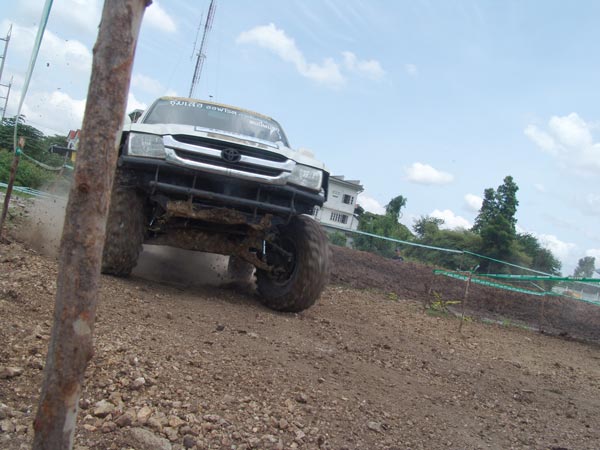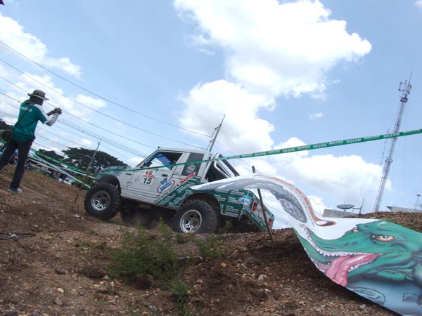 สนามแข่งขันทั้งสองวันเป็นสนามสร้างเลียนแบบธรรมชาติยาวประมาณ 400 เมตร เวลากำหนดให้ 5 นาที รูปแบบแข่งคู่ซ้ายขวา อุปสรรคส่วนใหญ่มีเนินต่ำๆดักสดุดหลายจุด เนินขวางยาวสลับ เนินลูกระนาด สะพาน และทางโค้งแคบและกว้าง ซึ่งนักบู๊ออฟโรดต้องลงแข่งขันทั้งหมดวันละ 4 SS รวม 8SS โดยการแข่งไปกลับและย้อนกลับไปมาจนครบทุกSS ซึ่งสนามสร้างหนนี้จะดัดแปลงมาจากปีที่แล้ว ต่างกันตรงที่ไม่มีบ่อน้ำโคลนลึกที่เปลี่ยนมาเป็นสะพานแคบ ดูเหมือนสนามนี้จะดูง่ายๆเบาหวิว แต่การแข่งขันก็ได้ความมันส์เร้าใจเหาะเหิรบินกระโจนเนินกันไม่ยั้งเท้า เชือดเฉือนแพ้ชนะกันท่ามกลางเสียงเชียร์อย่างสนุกสนาน ช่วงวันแรกมีนักบู๊ออฟโรดดีเดือดลุยแหลกพลาดรถยนต์พลิกตะแคงเค้เก้ติดพื้นไปสองทีม และวันสุดท้ายการแข่งขันก็ได้จบลงอย่างสมบูรณ์มีสีสันต์ ด้วยน้ำใจคืนน้ำใจจากเหล่าเพื่อนจากแดนไกลอุบลราชธานี กัณทรลักษณ์ ศรีสะเกษ สุรินทร์ ชลบุรี สมุทรปราการและกทม