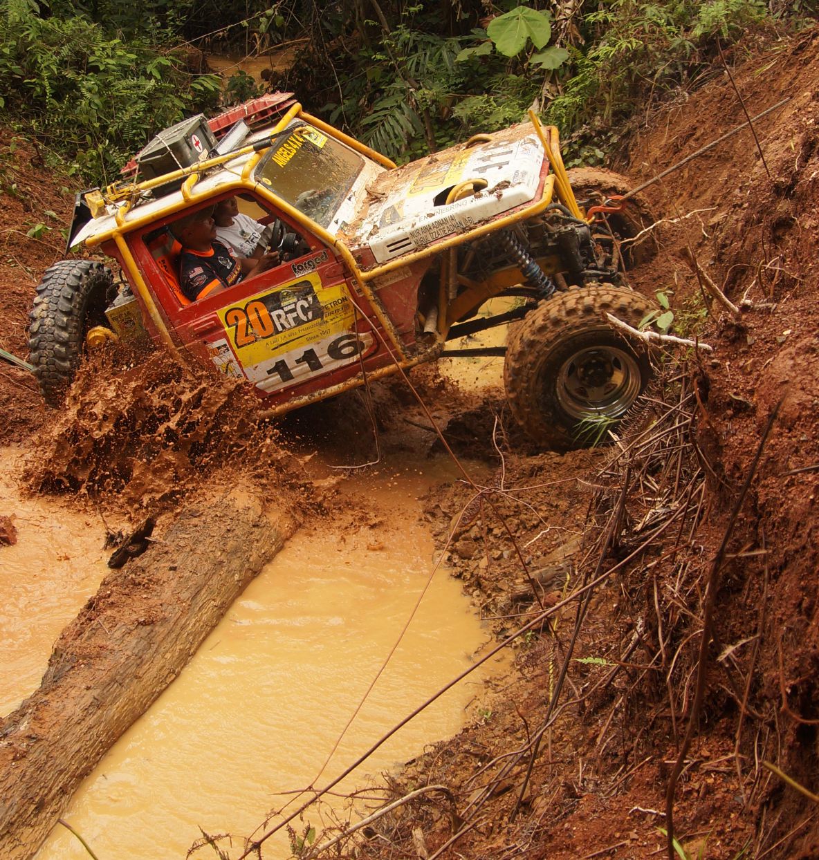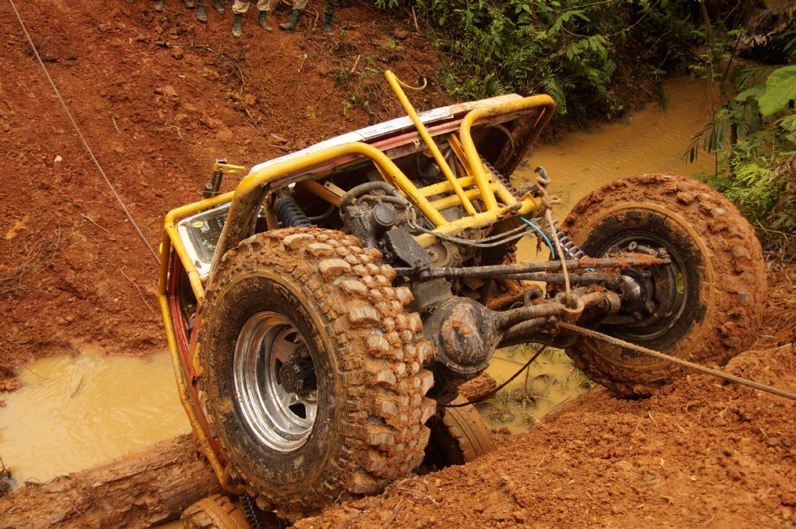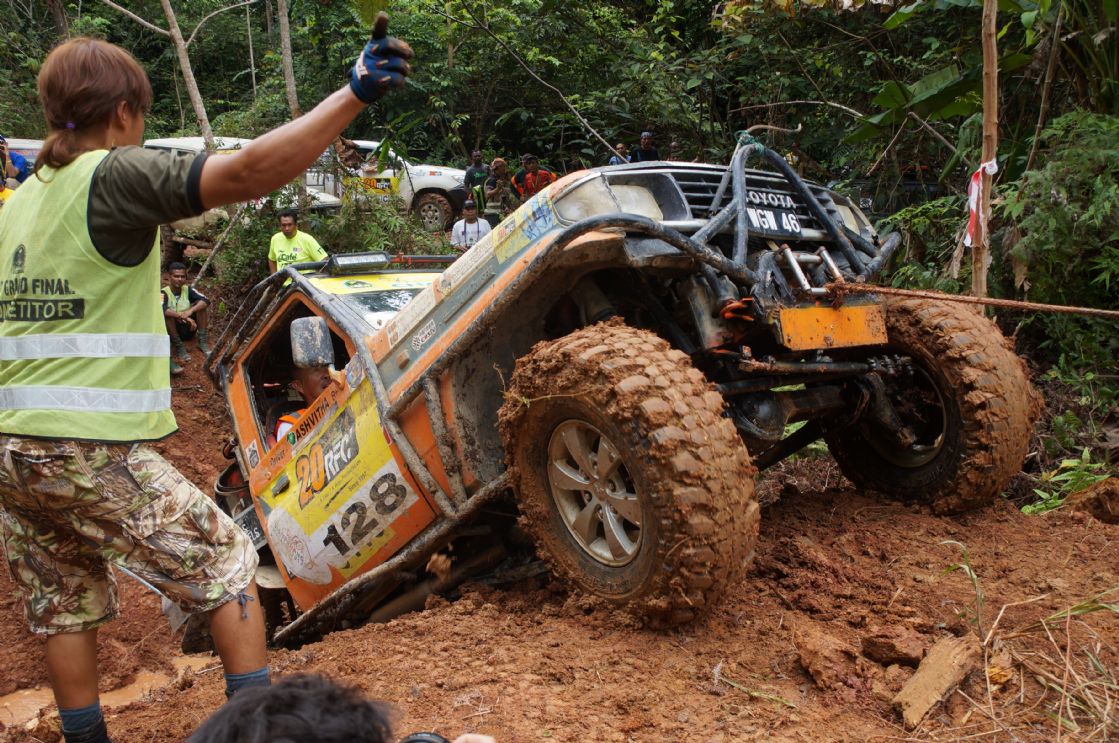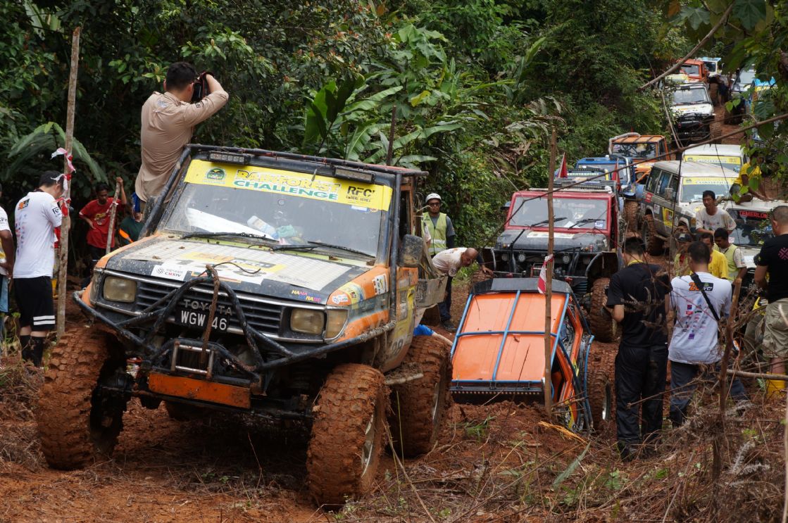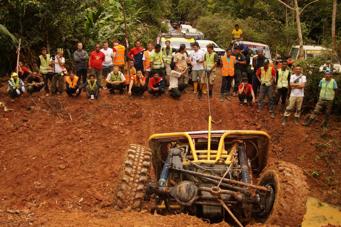 2 Dec, D-Day for the 27 remaining teams with machines and winches in good working order to enter this dreaded zone at Kabang with medic, communications crew and sweeper teams. In groups of two cars, they went to complete this route where the ordinary becomes extraordinary, where teamwork is everything to get out. Its the place where the adage: When the Going Gets Tough, the Tough Gets Going and its a place to be prepared for Anything Goes.