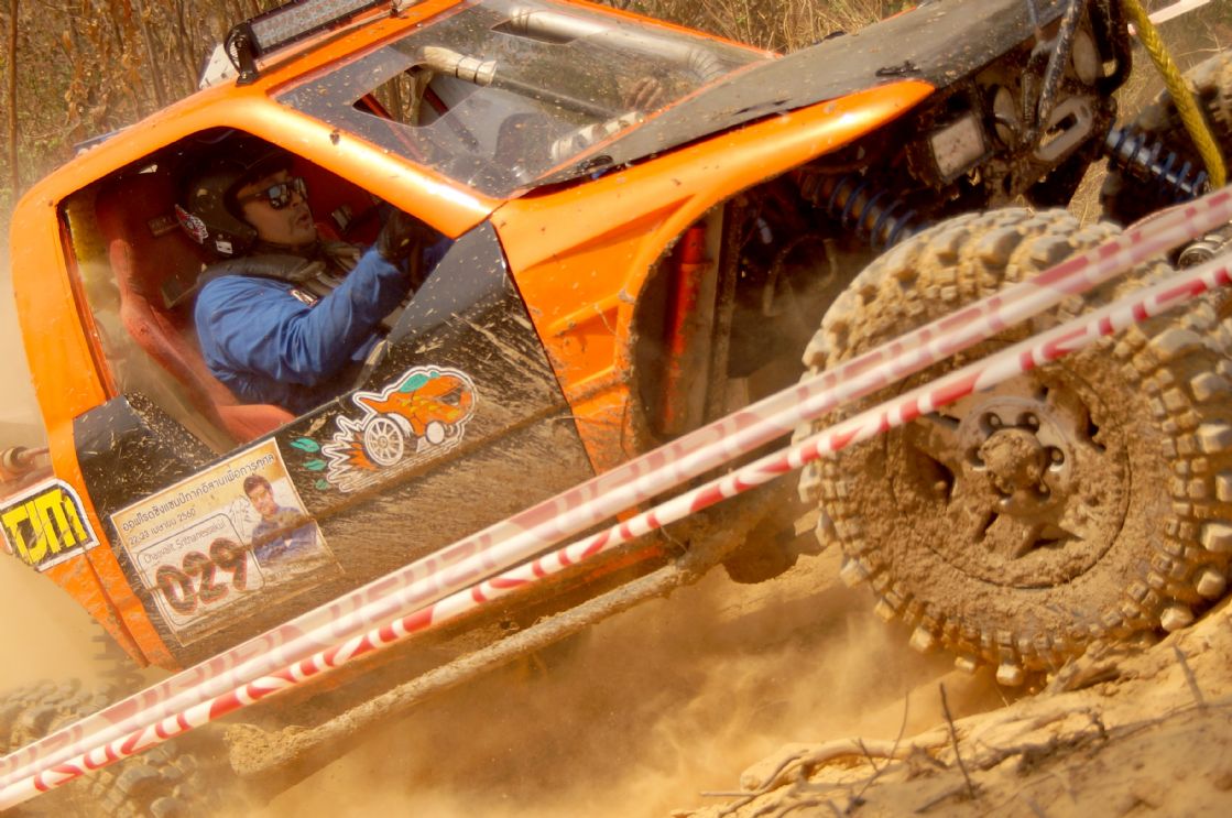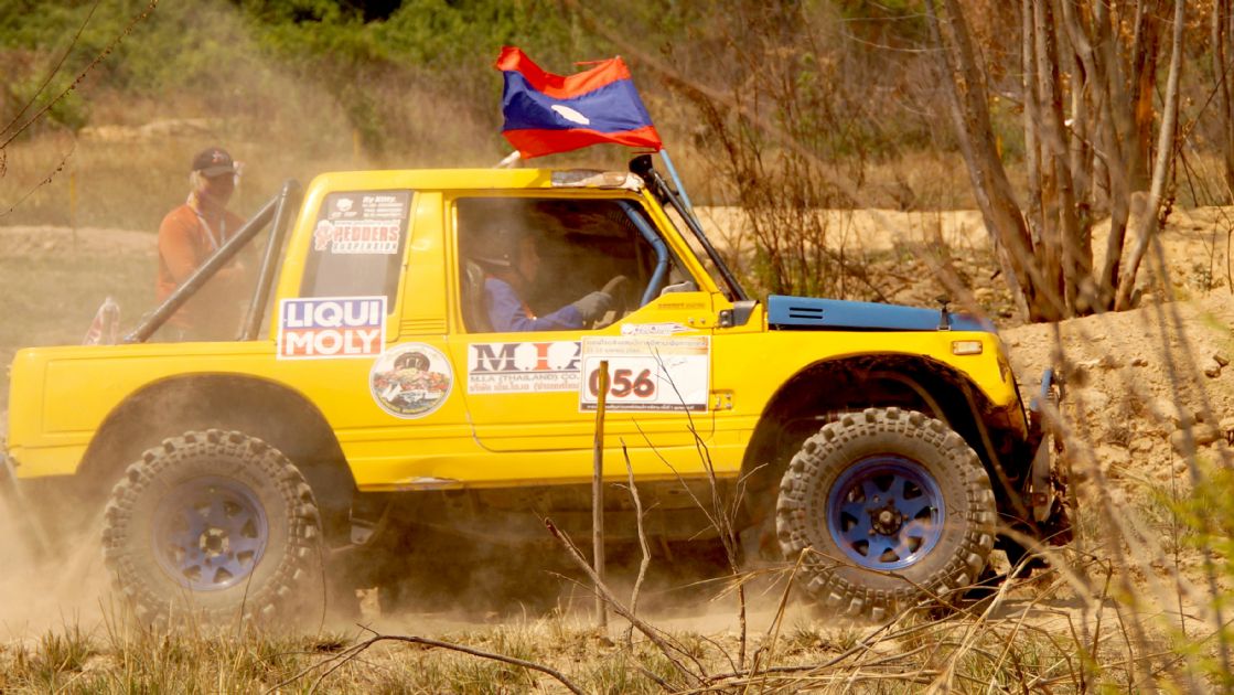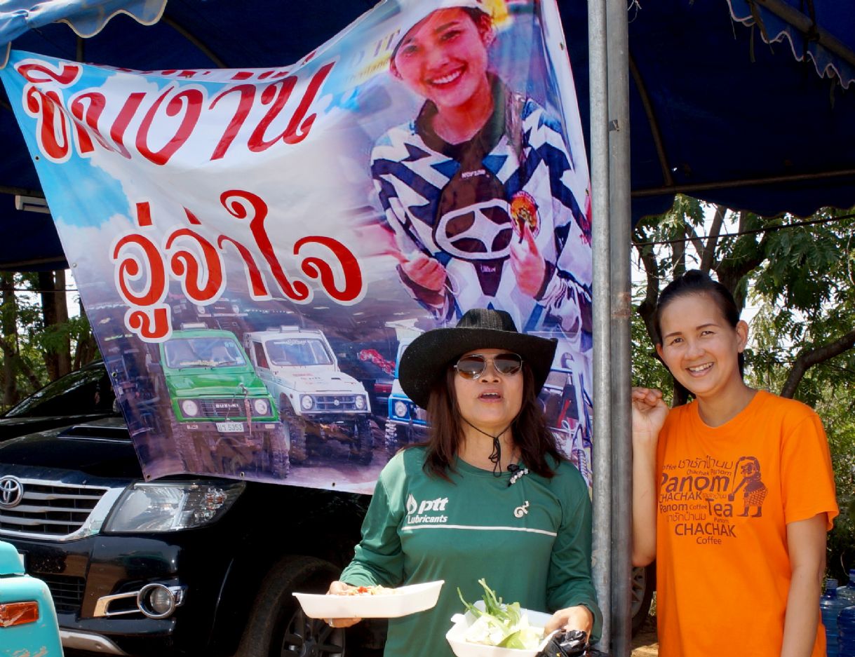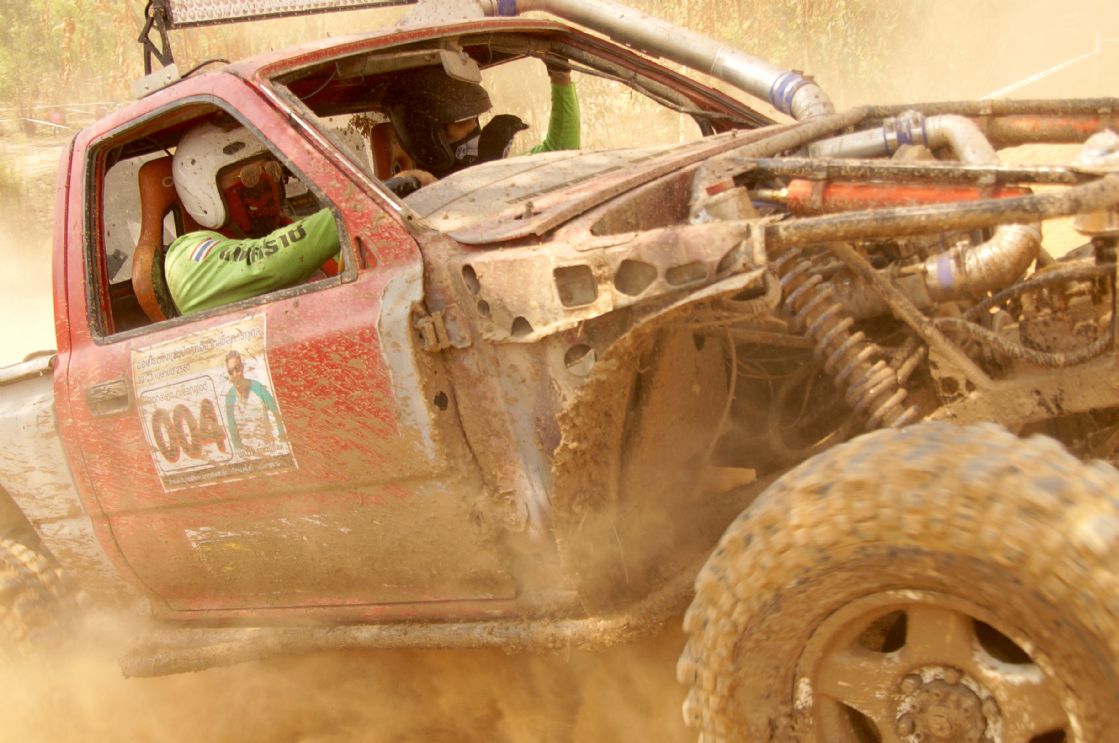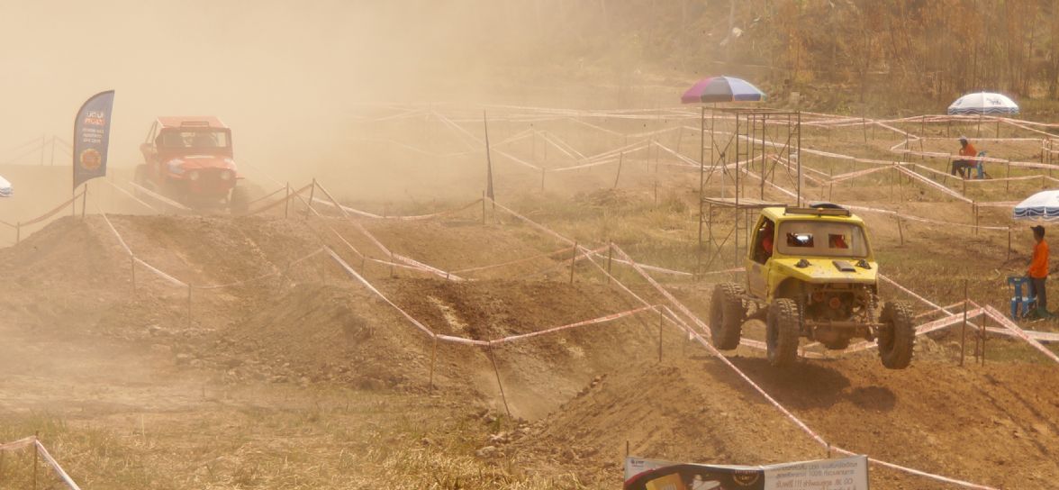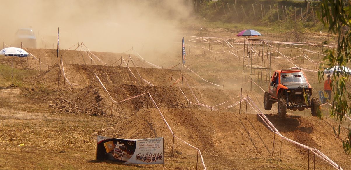 After ceremony the competitors fought in obstacles 4-6SS on the first day and 4SS on the second days were party two lane man-made about 150 -1,500 meter long each tracks which includes such as small hills , flying hill , danger narrow curves , dry deep ponds ,alternate hole , mud and water. The tough of tracks made many cars broken and overturn by hard floor , mud , water and heavy dust also were problems in the hottest summer season of northest during Song Kran festival Thai culture new year. Local Issan offroad follow the spectacular event with be satisfied challenging and exiting on 10SS all two days!