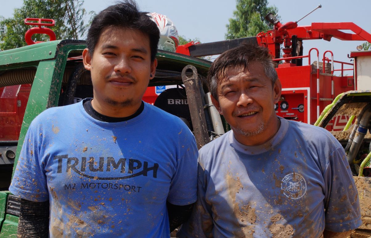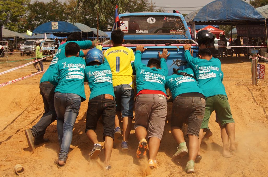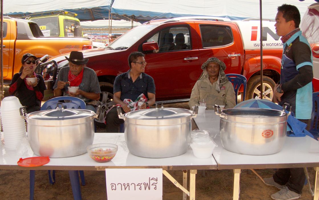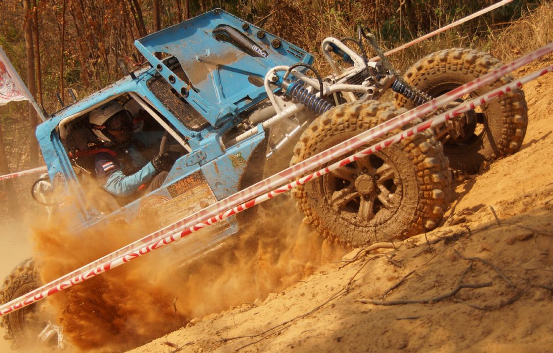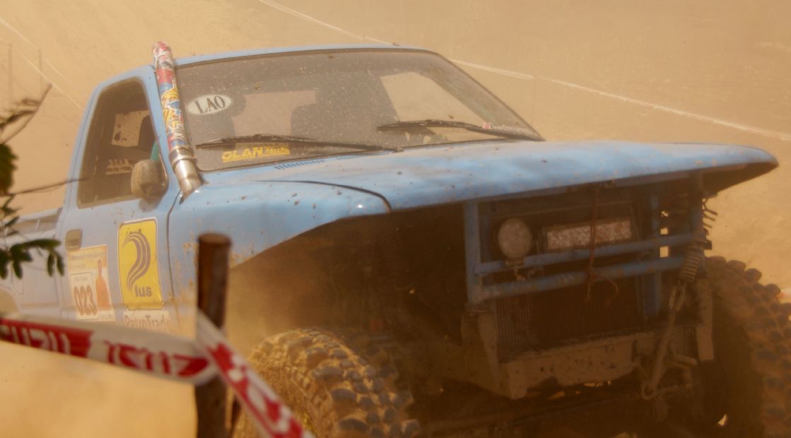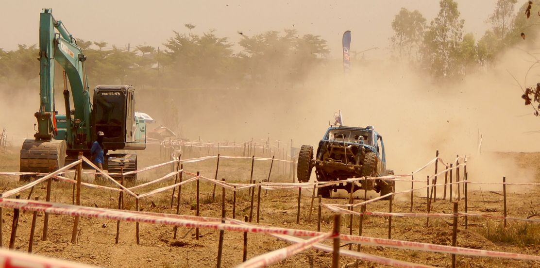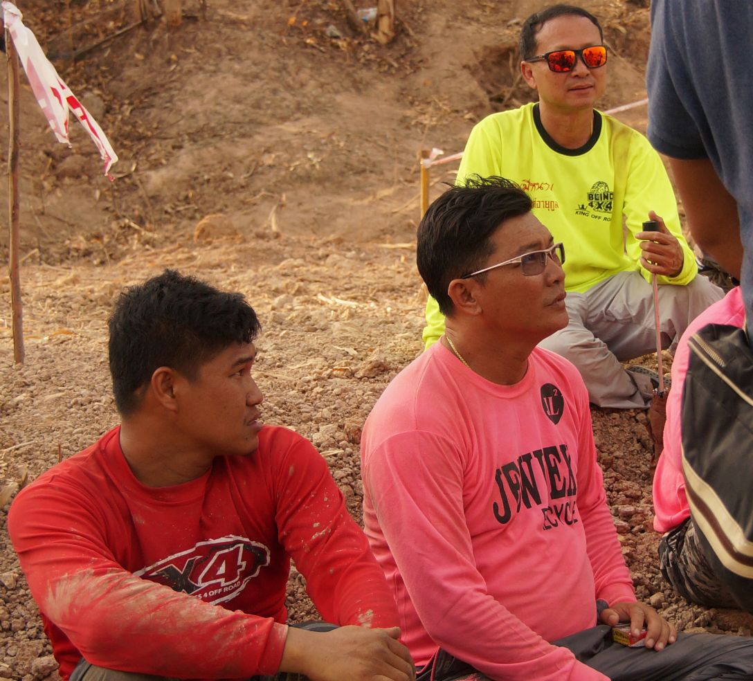 After ceremony the competitors fought in obstacles 4-6SS on the first day and 4SS on the second days were party two lane man-made about 150 -1,500 meter long each tracks which includes such as small hills , flying hill , danger narrow curves , dry deep ponds ,alternate hole , mud and water. The tough of tracks made many cars broken and overturn by hard floor , mud , water and heavy dust also were problems in the hottest summer season of northest during Song Kran festival Thai culture new year. Local Issan offroad follow the spectacular event with be satisfied challenging and exiting on 10SS all two days!