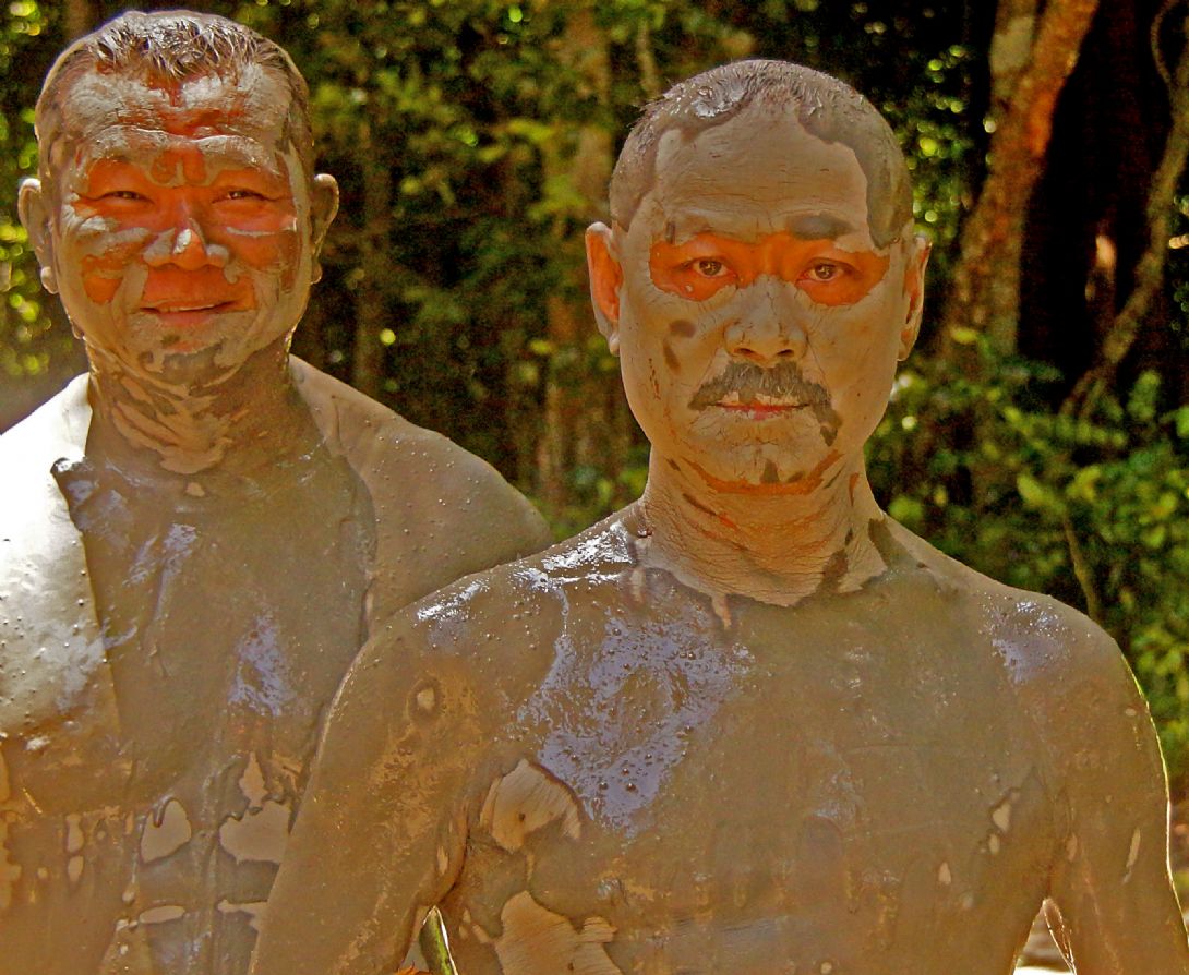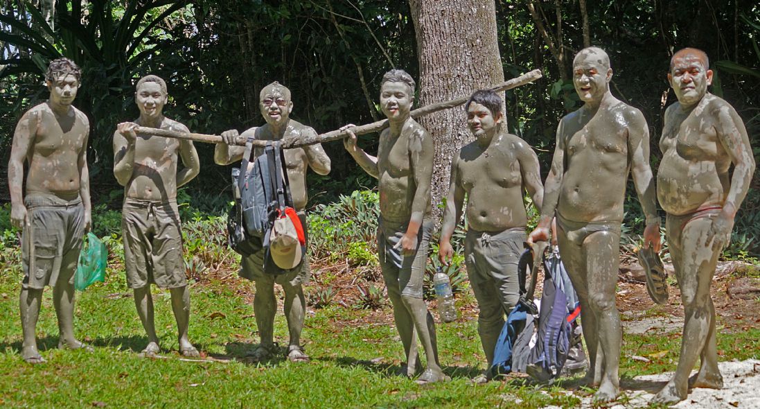 Day 10 Tuesday 22 August, All offroaders had sea adventure by boat to Taman Pulau Tiga island , funny time in emerald clear sea water, mud volcano and jungle track around island. And the most awesome sea foods and grill lamp on the beach in Stephanie Garden hotel.(บ่อโคลนภูเขาไฟ Mud volcano Toshiharu Urabe , Wong and Anthony Wong )