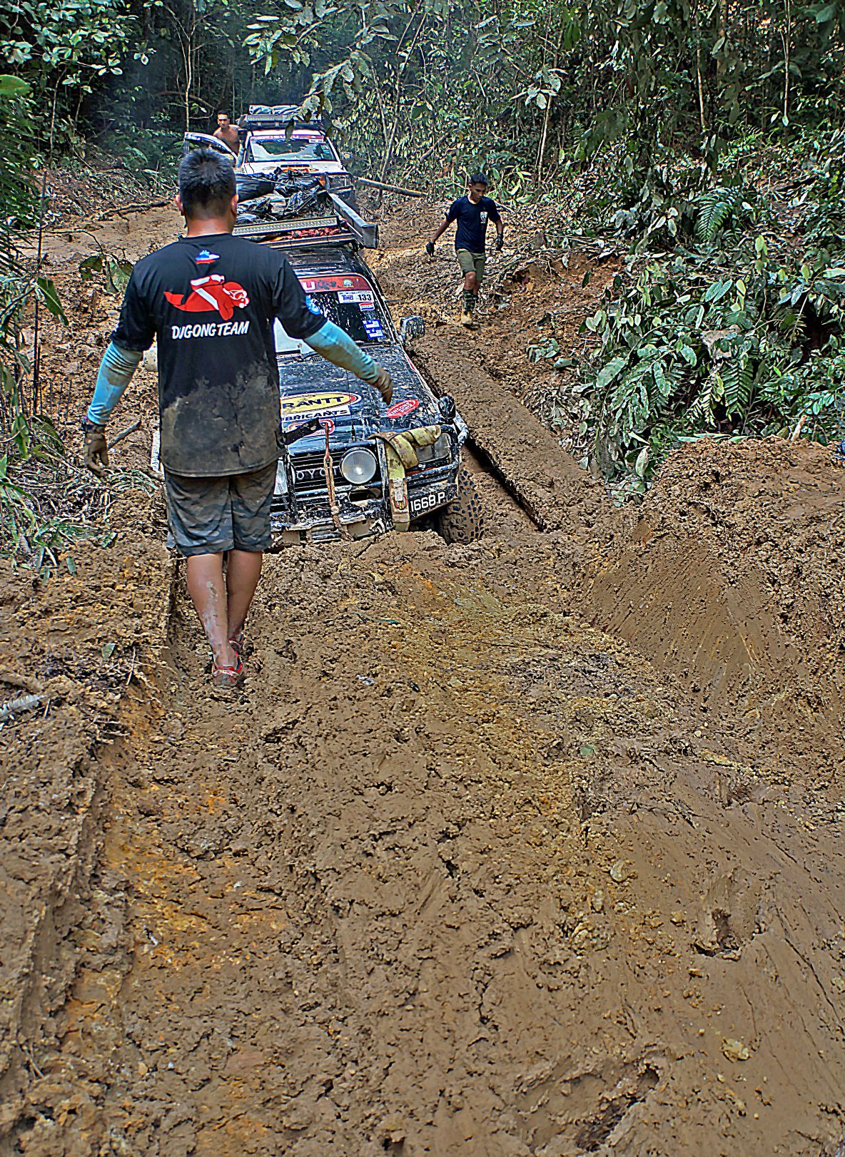 Once Team A has reached the Mandalipau River campsite, the remaining SS will be completed in time for the return journey to Kota Kinabalu. Team A abd Team B will regroup at this campsite and the last vehicle is expected to arrive on Day 7.