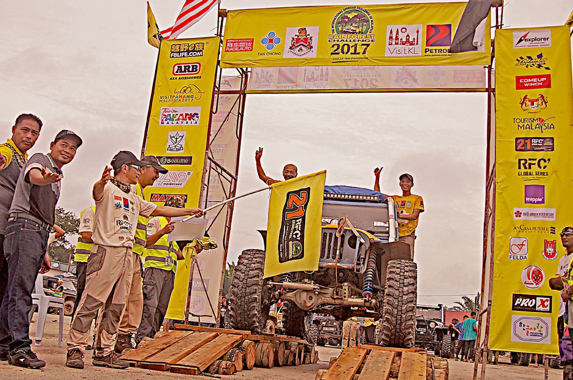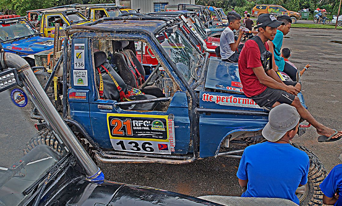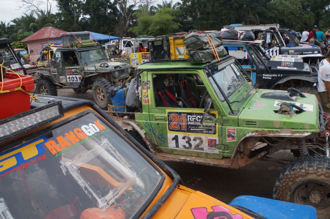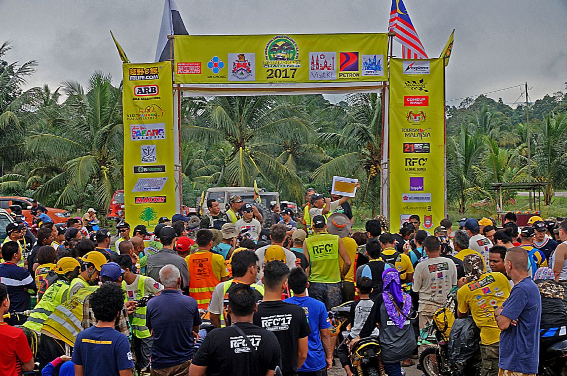 วันที่ 1 ธ.ค. เวลาเช้าประมาณ 09.00 น. ผู้เข้าแข่งขันถูกจัดแบ่งออกเป็นกลุ่มรถยนต์ 3 คันต่อ 1 ทีม แล้วจับฉลากลำดับเรียงคิวเข้าแดนสนธยาตามลำดับ และทำพิธีตีธงปล่อยตัวออกเดินทางเข้าป่าดงดิบแดนสนธยาฮูรูพูคิน รอมปิน(Hulu Pukin Rompin) บรรดาเหล่าจอมยุทธและนักบู๊ออฟโรดจำนวน 10 ทีมรถยนต์ 30 คัน แยกตัวใช้เส้นทางอุปสรรคโค-ตระ-ระหฤโหดที่สุด ขึ้นลงเขาสูงยาวชันเกือบแปดสิบองศา ลื่นโคลนเลน ติดขอบเหวภูเขาสูงชัน อันตรายหวาดเสียวตื่นเต้นมากที่สุดในช่วงประมาณ 8 ก.ม.สุดท้าย จากระยะทางทั้งหมดประมาณ 27 ก.ม. ส่วนทีมผู้สนับสนุน ทีมทัวร์ท่องเที่ยว ทีมนักข่าวและทีมเจ้าหน้าที่เกือบทั้งหมด ใช้เส้นทางอ้อมอีกด้านหนึ่งระยะทางยาวประมาณ 30 ก.ม. แม้นเส้นทางจะดูไม่อันตราย แต่เส้นทางก็ยังโค-ตระ-ระโหด ผจญภัยทะเลโคลนในป่า เละเทะลื่นเลอะโคลน สะพานซุงเล็กลื่น สะพานขาด หลุมโคลนลึก ขึ้นลงทางชันสั้นๆ ต้องใช้วิ้นช์ทั้งขาเข้าและขาออกแทบตลอดเส้นทาง ช่วงเดินทางในแดนสนธยาจึงเป็นไฮไล้ท์สุดยอดการผจญภัยออฟโรดตื่นเต้นมันส์เร้าใจที่สุดของทุกคน ในการเข้ามาร่วมการแข่งขันRFC และมีเพียงรถยนต์กลุ่มเจ้าหน้าที่จัดการแข่งขันRFCกับทีมนักข่าวประมาณสิบกว่าคัน สามารถเดินทางเข้าไปถึงจุดนัดพบปลายเส้นทางของนักแข่งที่ แคมป์ฮูรูพูคิน ในเวลากลางดึก ส่วนกลุ่มหลังๆทีมนักข่าว ทีมสนับสนุนนักแข่ง ทีมทัวร์ท่องเที่ยวไม่น้อยกว่ายี่สิบคัน ต้องจอดตั้งแคมป์ค้างแรม เรียงรายอยู่บนข้างถนนกลางป่าดงดิบ ห่างจากจุดนัดพบประมาณ 15 ก.ม. ท่ามกลางร่องรอยสัตว์ป่าและตัวทากที่มีอยู่มากมายแทบทุกที่