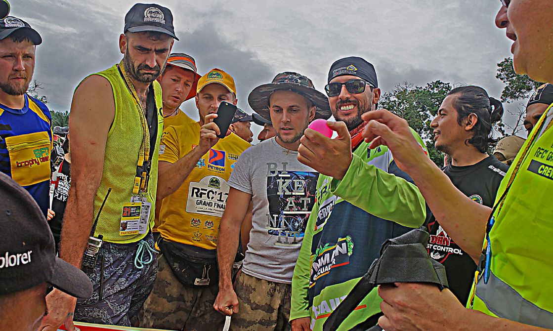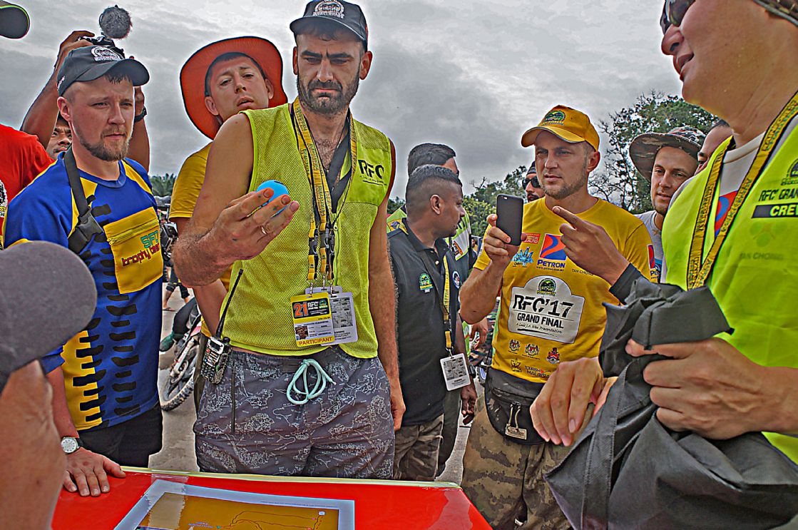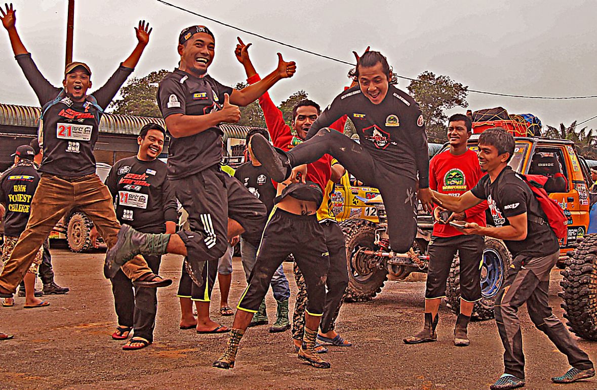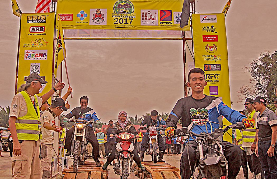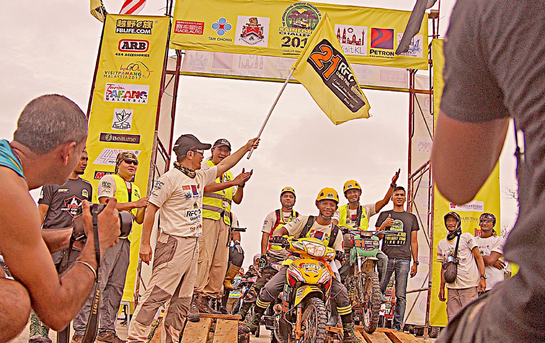 วันที่ 1 ธ.ค. เวลาเช้าประมาณ 09.00 น. ผู้เข้าแข่งขันถูกจัดแบ่งออกเป็นกลุ่มรถยนต์ 3 คันต่อ 1 ทีม แล้วจับฉลากลำดับเรียงคิวเข้าแดนสนธยาตามลำดับ และทำพิธีตีธงปล่อยตัวออกเดินทางเข้าป่าดงดิบแดนสนธยาฮูรูพูคิน รอมปิน(Hulu Pukin Rompin) บรรดาเหล่าจอมยุทธและนักบู๊ออฟโรดจำนวน 10 ทีมรถยนต์ 30 คัน แยกตัวใช้เส้นทางอุปสรรคโค-ตระ-ระหฤโหดที่สุด ขึ้นลงเขาสูงยาวชันเกือบแปดสิบองศา ลื่นโคลนเลน ติดขอบเหวภูเขาสูงชัน อันตรายหวาดเสียวตื่นเต้นมากที่สุดในช่วงประมาณ 8 ก.ม.สุดท้าย จากระยะทางทั้งหมดประมาณ 27 ก.ม. ส่วนทีมผู้สนับสนุน ทีมทัวร์ท่องเที่ยว ทีมนักข่าวและทีมเจ้าหน้าที่เกือบทั้งหมด ใช้เส้นทางอ้อมอีกด้านหนึ่งระยะทางยาวประมาณ 30 ก.ม. แม้นเส้นทางจะดูไม่อันตราย แต่เส้นทางก็ยังโค-ตระ-ระโหด ผจญภัยทะเลโคลนในป่า เละเทะลื่นเลอะโคลน สะพานซุงเล็กลื่น สะพานขาด หลุมโคลนลึก ขึ้นลงทางชันสั้นๆ ต้องใช้วิ้นช์ทั้งขาเข้าและขาออกแทบตลอดเส้นทาง ช่วงเดินทางในแดนสนธยาจึงเป็นไฮไล้ท์สุดยอดการผจญภัยออฟโรดตื่นเต้นมันส์เร้าใจที่สุดของทุกคน ในการเข้ามาร่วมการแข่งขันRFC และมีเพียงรถยนต์กลุ่มเจ้าหน้าที่จัดการแข่งขันRFCกับทีมนักข่าวประมาณสิบกว่าคัน สามารถเดินทางเข้าไปถึงจุดนัดพบปลายเส้นทางของนักแข่งที่ แคมป์ฮูรูพูคิน ในเวลากลางดึก ส่วนกลุ่มหลังๆทีมนักข่าว ทีมสนับสนุนนักแข่ง ทีมทัวร์ท่องเที่ยวไม่น้อยกว่ายี่สิบคัน ต้องจอดตั้งแคมป์ค้างแรม เรียงรายอยู่บนข้างถนนกลางป่าดงดิบ ห่างจากจุดนัดพบประมาณ 15 ก.ม. ท่ามกลางร่องรอยสัตว์ป่าและตัวทากที่มีอยู่มากมายแทบทุกที่
