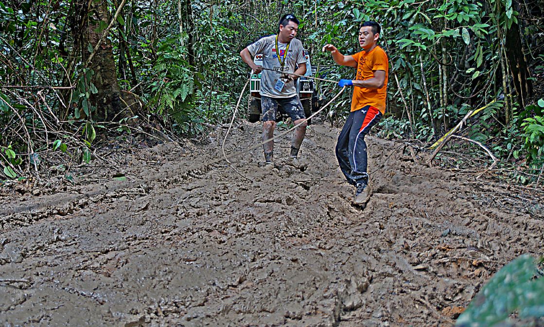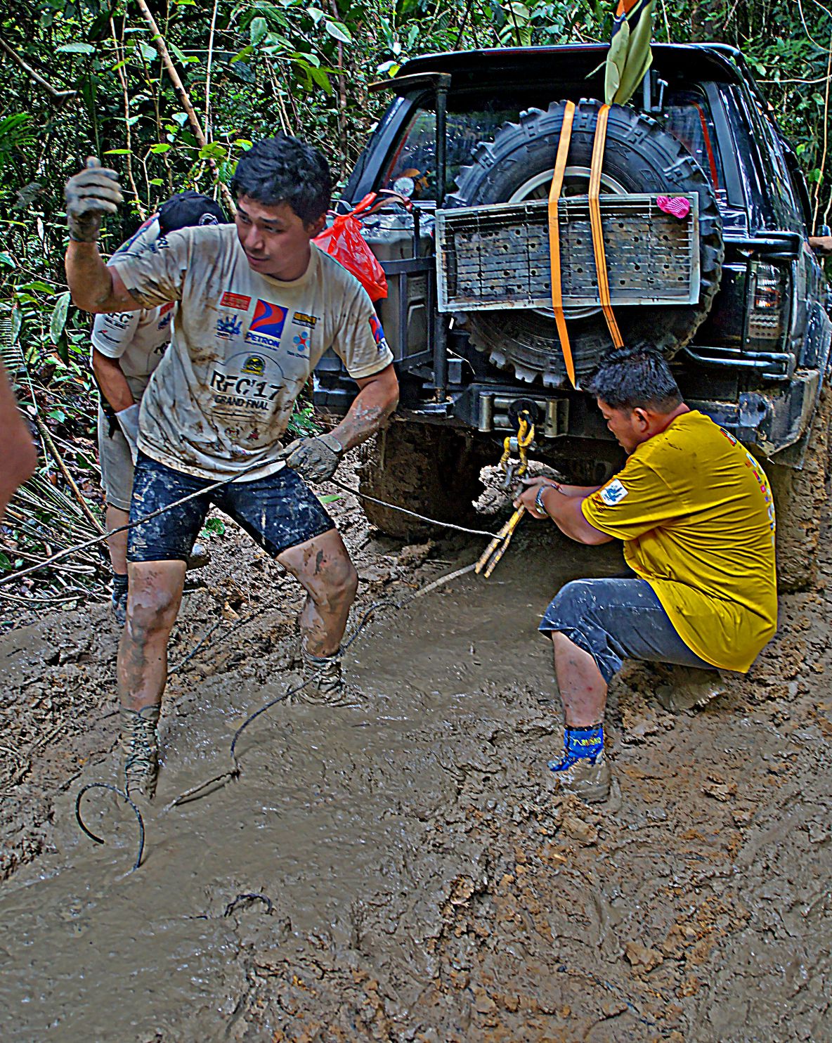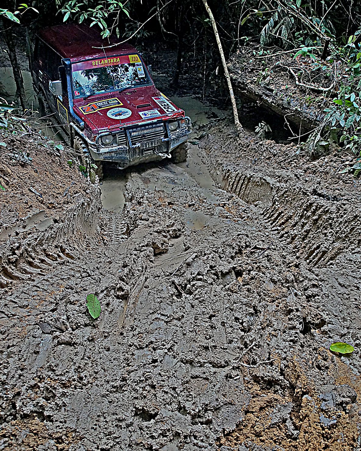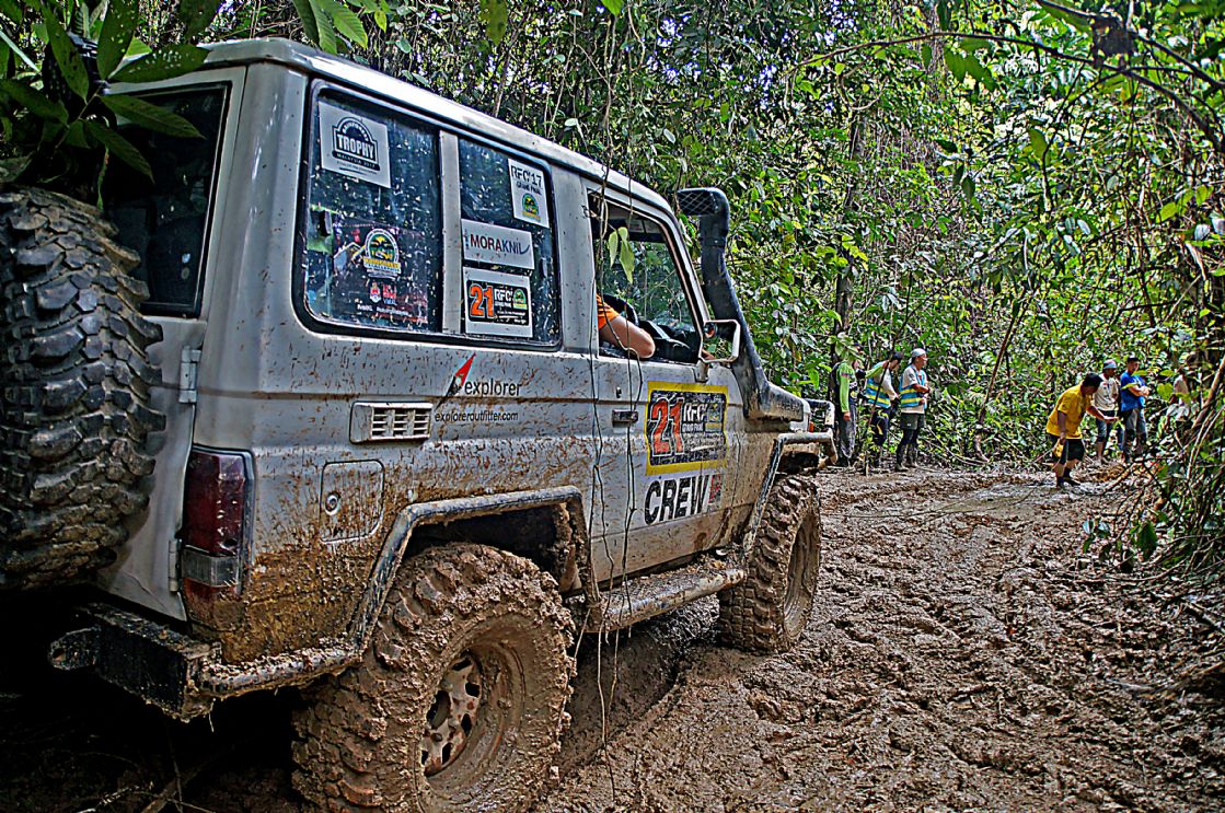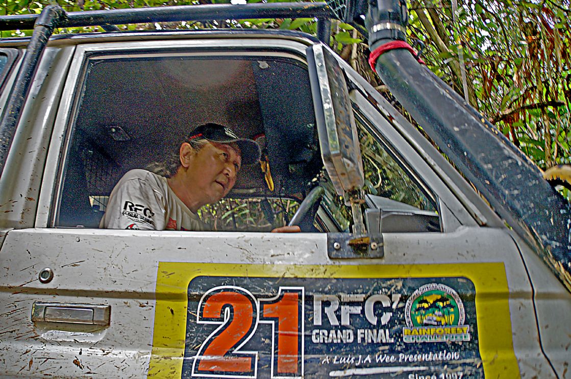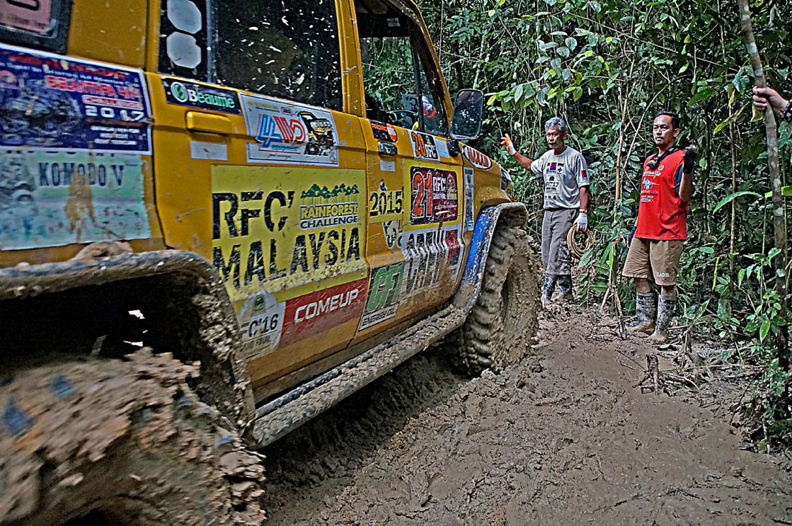 วันที่ 1 ธ.ค. เวลาเช้าประมาณ 09.00 น. ผู้เข้าแข่งขันถูกจัดแบ่งออกเป็นกลุ่มรถยนต์ 3 คันต่อ 1 ทีม แล้วจับฉลากลำดับเรียงคิวเข้าแดนสนธยาตามลำดับ และทำพิธีตีธงปล่อยตัวออกเดินทางเข้าป่าดงดิบแดนสนธยาฮูรูพูคิน รอมปิน(Hulu Pukin Rompin) บรรดาเหล่าจอมยุทธและนักบู๊ออฟโรดจำนวน 10 ทีมรถยนต์ 30 คัน แยกตัวใช้เส้นทางอุปสรรคโค-ตระ-ระหฤโหดที่สุด ขึ้นลงเขาสูงยาวชันเกือบแปดสิบองศา ลื่นโคลนเลน ติดขอบเหวภูเขาสูงชัน อันตรายหวาดเสียวตื่นเต้นมากที่สุดในช่วงประมาณ 8 ก.ม.สุดท้าย จากระยะทางทั้งหมดประมาณ 27 ก.ม. ส่วนทีมผู้สนับสนุน ทีมทัวร์ท่องเที่ยว ทีมนักข่าวและทีมเจ้าหน้าที่เกือบทั้งหมด ใช้เส้นทางอ้อมอีกด้านหนึ่งระยะทางยาวประมาณ 30 ก.ม. แม้นเส้นทางจะดูไม่อันตราย แต่เส้นทางก็ยังโค-ตระ-ระโหด ผจญภัยทะเลโคลนในป่า เละเทะลื่นเลอะโคลน สะพานซุงเล็กลื่น สะพานขาด หลุมโคลนลึก ขึ้นลงทางชันสั้นๆ ต้องใช้วิ้นช์ทั้งขาเข้าและขาออกแทบตลอดเส้นทาง ช่วงเดินทางในแดนสนธยาจึงเป็นไฮไล้ท์สุดยอดการผจญภัยออฟโรดตื่นเต้นมันส์เร้าใจที่สุดของทุกคน ในการเข้ามาร่วมการแข่งขันRFC และมีเพียงรถยนต์กลุ่มเจ้าหน้าที่จัดการแข่งขันRFCกับทีมนักข่าวประมาณสิบกว่าคัน สามารถเดินทางเข้าไปถึงจุดนัดพบปลายเส้นทางของนักแข่งที่ แคมป์ฮูรูพูคิน ในเวลากลางดึก ส่วนกลุ่มหลังๆทีมนักข่าว ทีมสนับสนุนนักแข่ง ทีมทัวร์ท่องเที่ยวไม่น้อยกว่ายี่สิบคัน ต้องจอดตั้งแคมป์ค้างแรม เรียงรายอยู่บนข้างถนนกลางป่าดงดิบ ห่างจากจุดนัดพบประมาณ 15 ก.ม. ท่ามกลางร่องรอยสัตว์ป่าและตัวทากที่มีอยู่มากมายแทบทุกที่