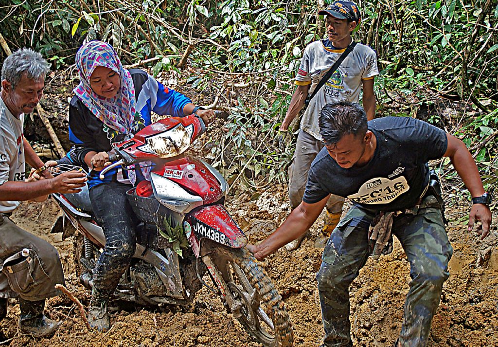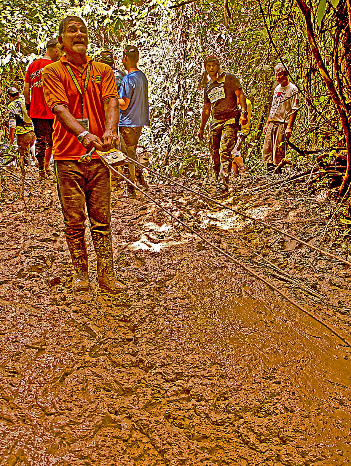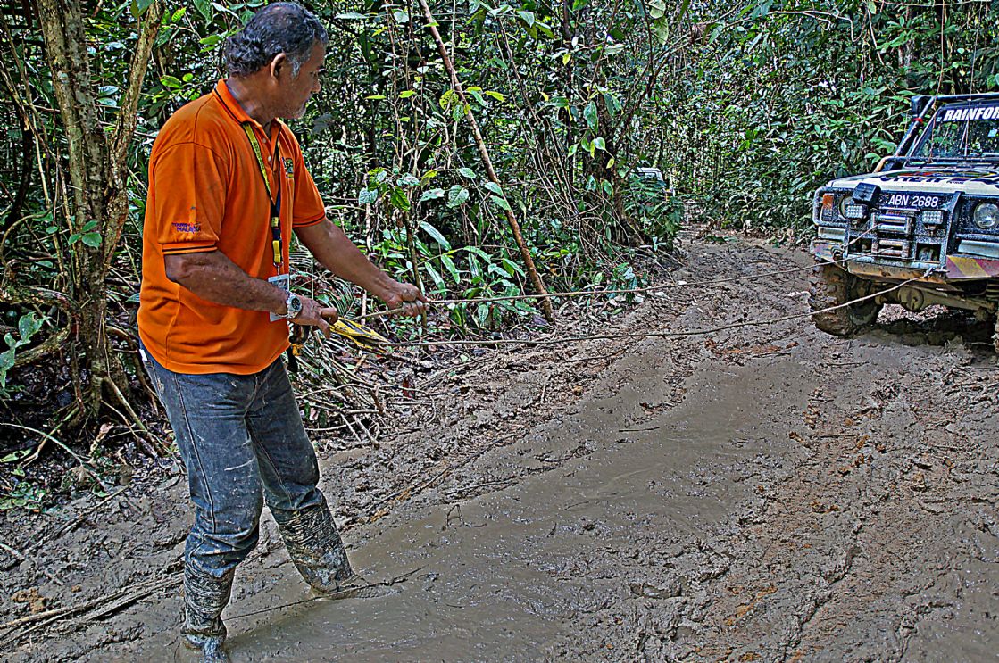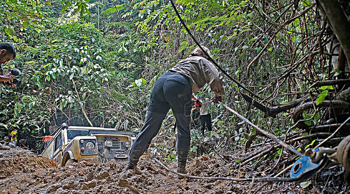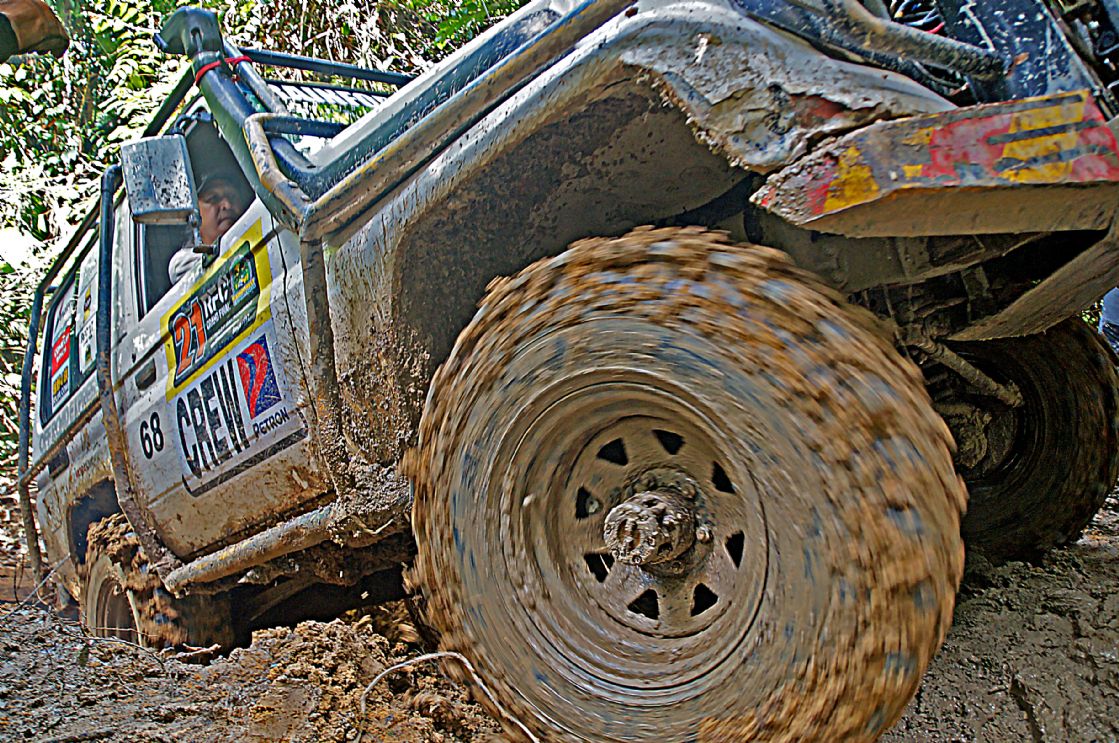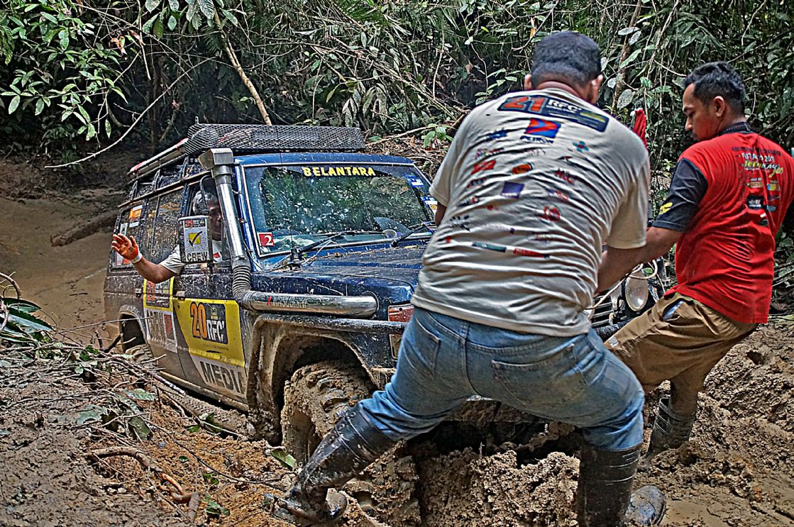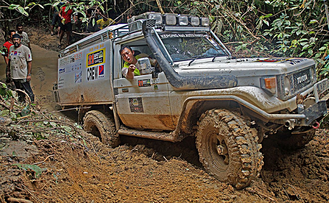 วันที่ 1 ธ.ค. เวลาเช้าประมาณ 09.00 น. ผู้เข้าแข่งขันถูกจัดแบ่งออกเป็นกลุ่มรถยนต์ 3 คันต่อ 1 ทีม แล้วจับฉลากลำดับเรียงคิวเข้าแดนสนธยาตามลำดับ และทำพิธีตีธงปล่อยตัวออกเดินทางเข้าป่าดงดิบแดนสนธยาฮูรูพูคิน รอมปิน(Hulu Pukin Rompin) บรรดาเหล่าจอมยุทธและนักบู๊ออฟโรดจำนวน 10 ทีมรถยนต์ 30 คัน แยกตัวใช้เส้นทางอุปสรรคโค-ตระ-ระหฤโหดที่สุด ขึ้นลงเขาสูงยาวชันเกือบแปดสิบองศา ลื่นโคลนเลน ติดขอบเหวภูเขาสูงชัน อันตรายหวาดเสียวตื่นเต้นมากที่สุดในช่วงประมาณ 8 ก.ม.สุดท้าย จากระยะทางทั้งหมดประมาณ 27 ก.ม. ส่วนทีมผู้สนับสนุน ทีมทัวร์ท่องเที่ยว ทีมนักข่าวและทีมเจ้าหน้าที่เกือบทั้งหมด ใช้เส้นทางอ้อมอีกด้านหนึ่งระยะทางยาวประมาณ 30 ก.ม. แม้นเส้นทางจะดูไม่อันตราย แต่เส้นทางก็ยังโค-ตระ-ระโหด ผจญภัยทะเลโคลนในป่า เละเทะลื่นเลอะโคลน สะพานซุงเล็กลื่น สะพานขาด หลุมโคลนลึก ขึ้นลงทางชันสั้นๆ ต้องใช้วิ้นช์ทั้งขาเข้าและขาออกแทบตลอดเส้นทาง ช่วงเดินทางในแดนสนธยาจึงเป็นไฮไล้ท์สุดยอดการผจญภัยออฟโรดตื่นเต้นมันส์เร้าใจที่สุดของทุกคน ในการเข้ามาร่วมการแข่งขันRFC และมีเพียงรถยนต์กลุ่มเจ้าหน้าที่จัดการแข่งขันRFCกับทีมนักข่าวประมาณสิบกว่าคัน สามารถเดินทางเข้าไปถึงจุดนัดพบปลายเส้นทางของนักแข่งที่ แคมป์ฮูรูพูคิน ในเวลากลางดึก ส่วนกลุ่มหลังๆทีมนักข่าว ทีมสนับสนุนนักแข่ง ทีมทัวร์ท่องเที่ยวไม่น้อยกว่ายี่สิบคัน ต้องจอดตั้งแคมป์ค้างแรม เรียงรายอยู่บนข้างถนนกลางป่าดงดิบ ห่างจากจุดนัดพบประมาณ 15 ก.ม. ท่ามกลางร่องรอยสัตว์ป่าและตัวทากที่มีอยู่มากมายแทบทุกที่