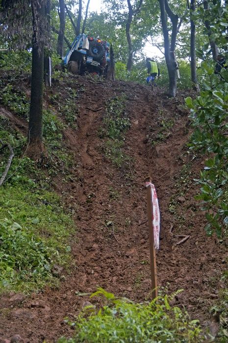 Day 2 July 22th, The first off-road battlefield in the heavy rain SS1 Up and down slippery, high and long dangerous steep cliffs at DOT,Village Kumbhari, Taluka Sanguem!